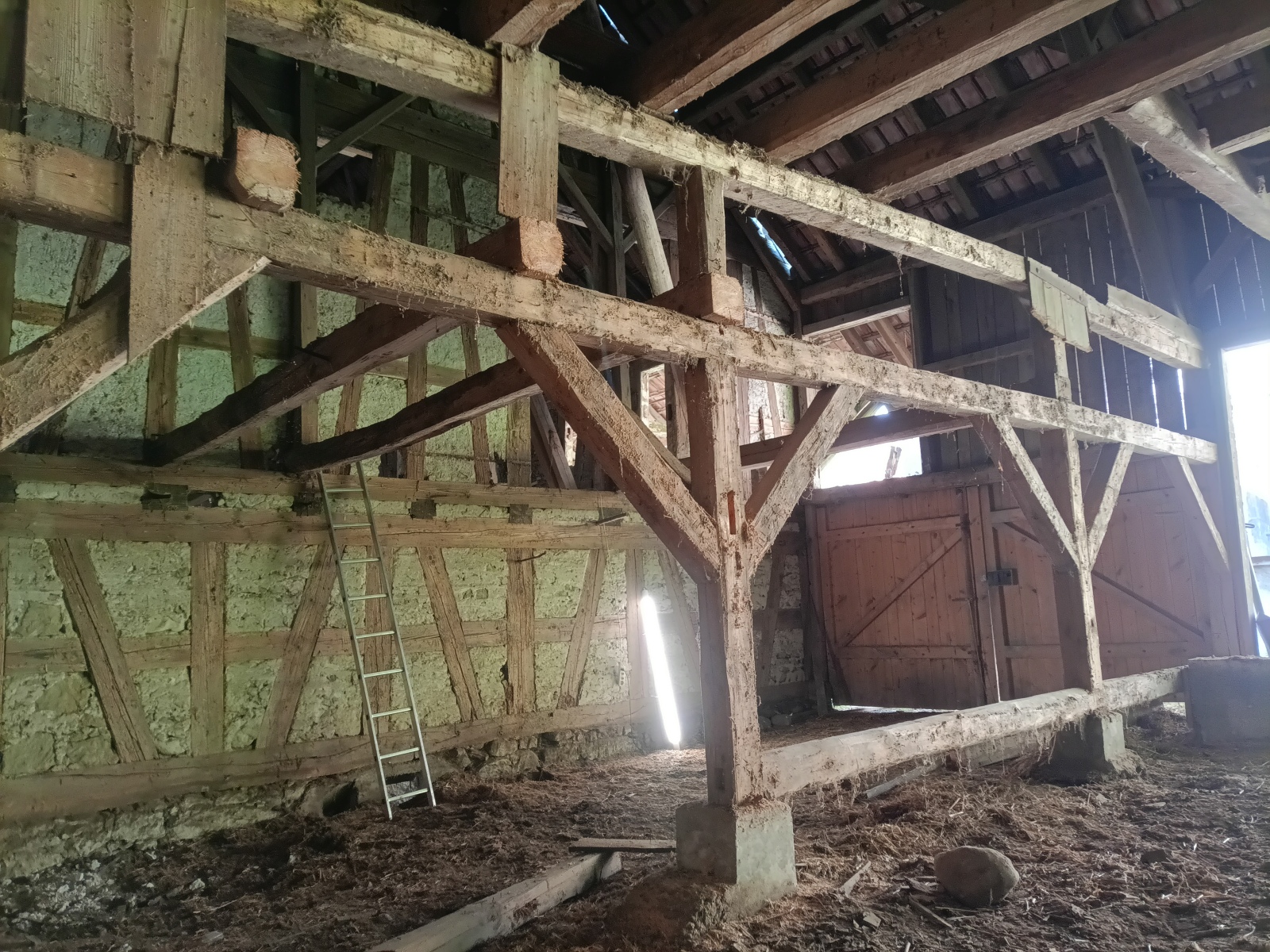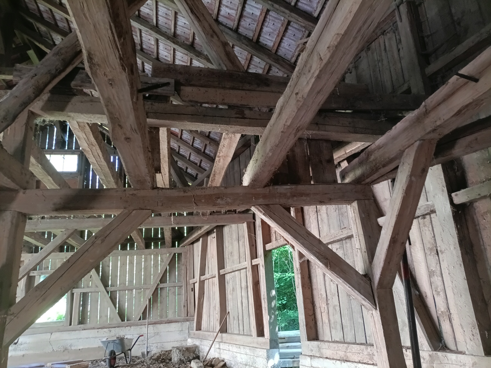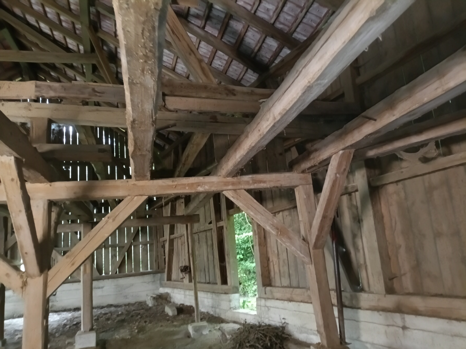 Scheune, erste Kehlbalkenkonstruktion prov. verstärkt (Träger, Spanngurt,….)