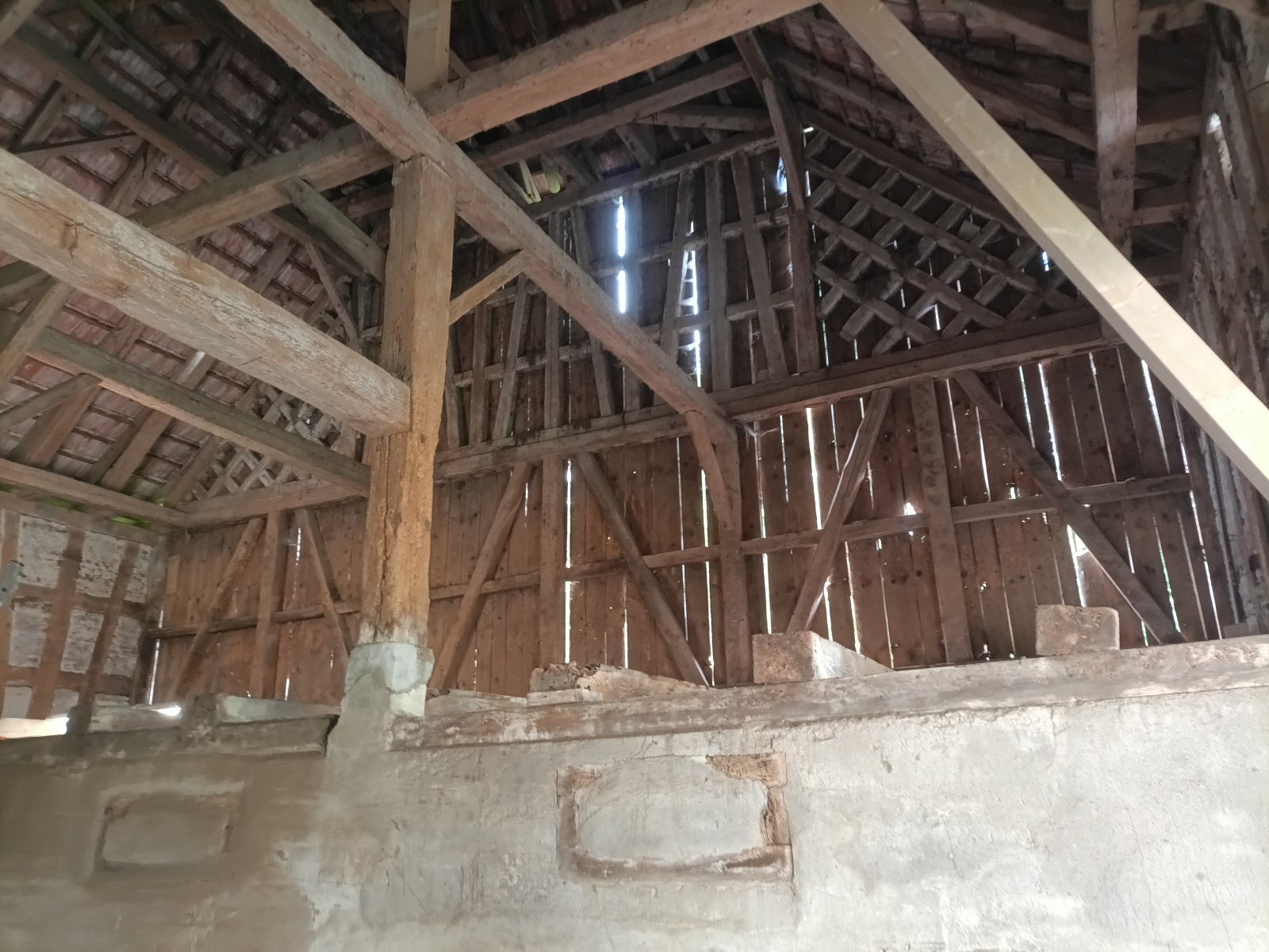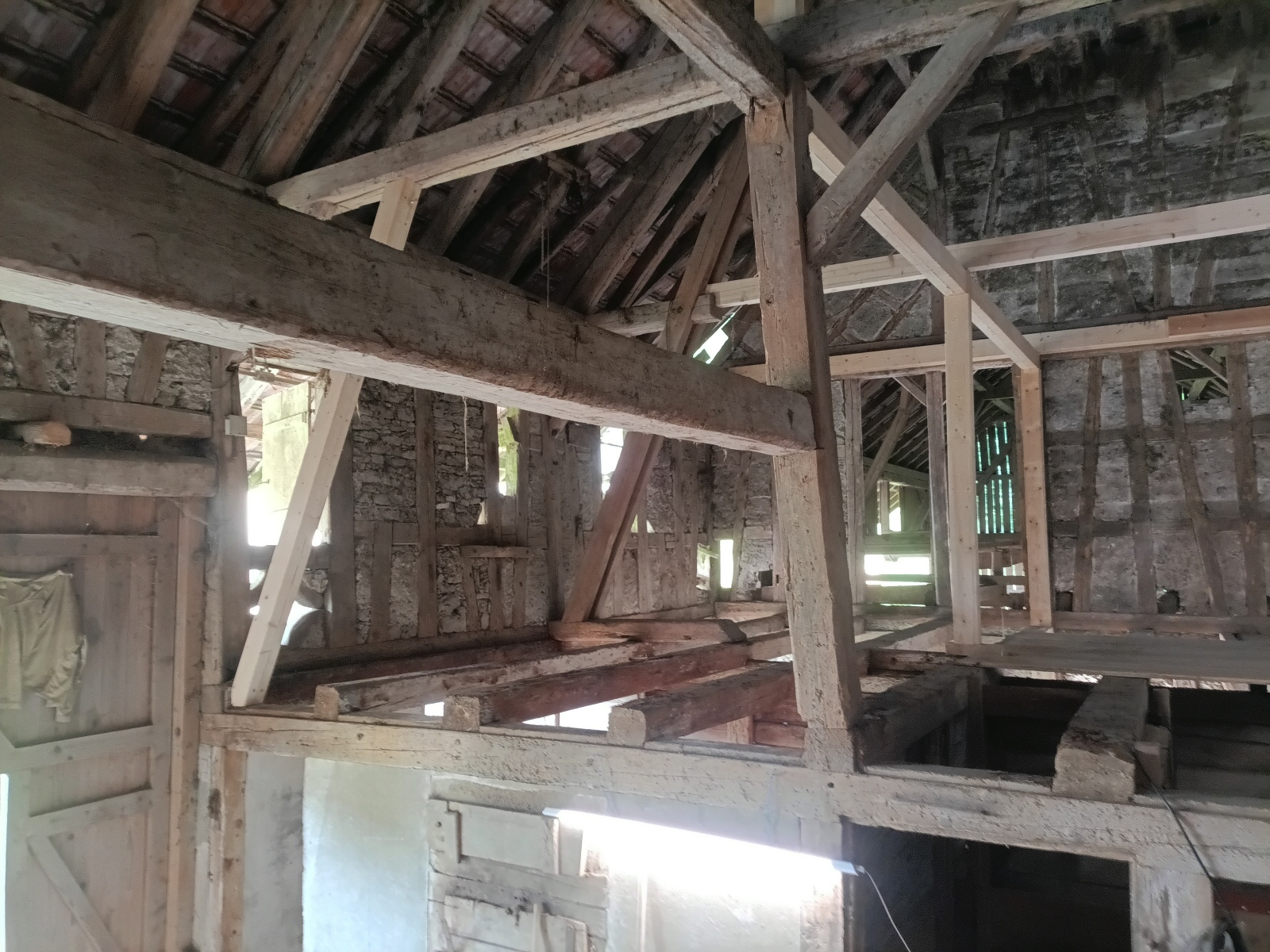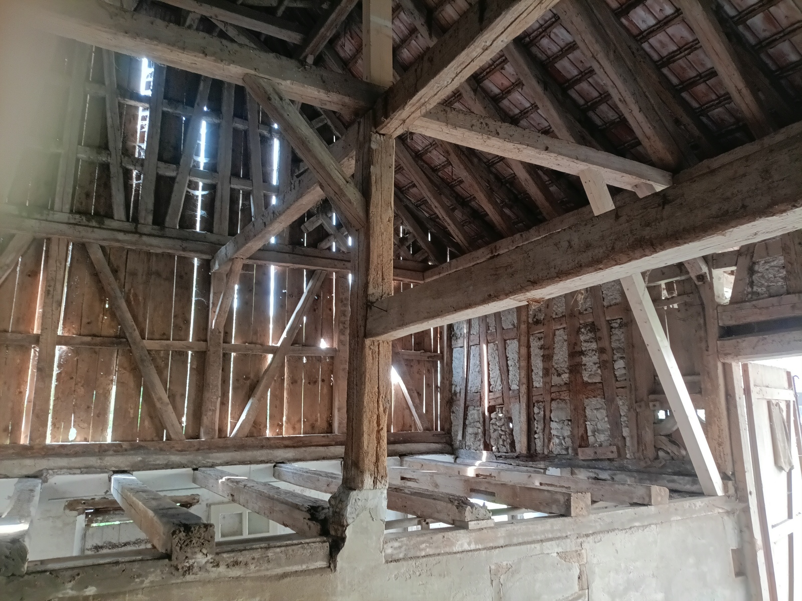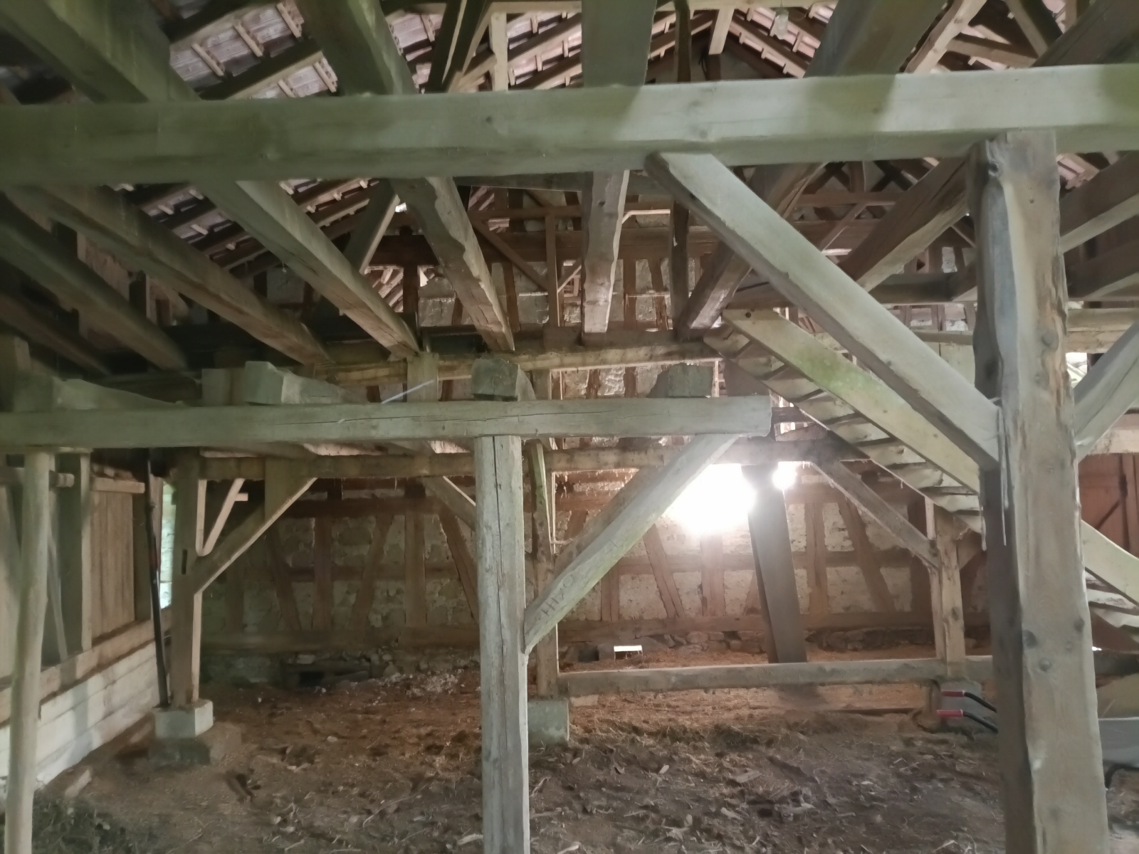 Scheune, erste Kehlbalkenkonstruktion prov. verstärkt (Träger, Spanngurt,….)
