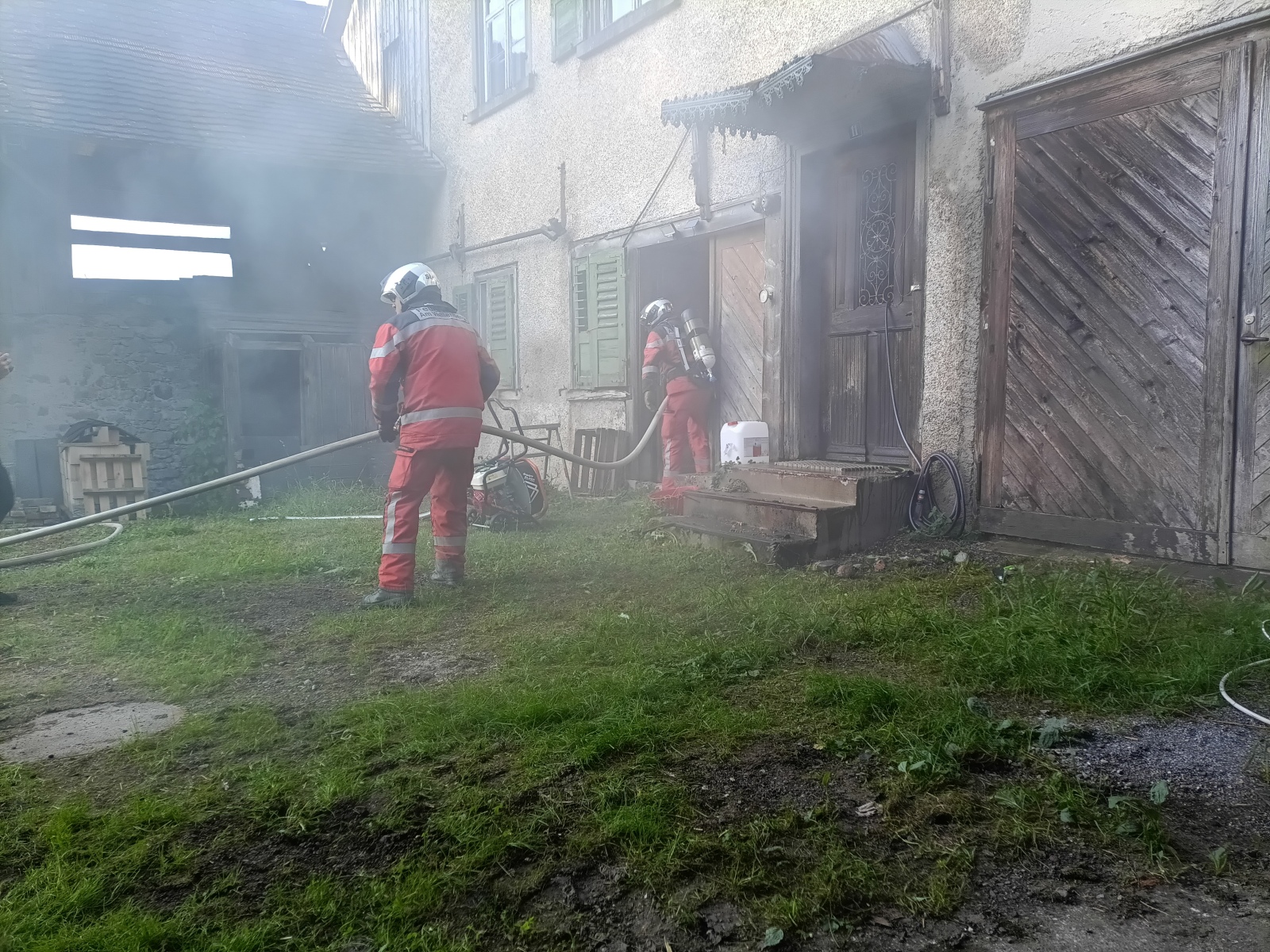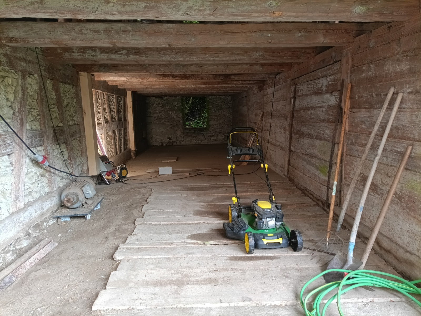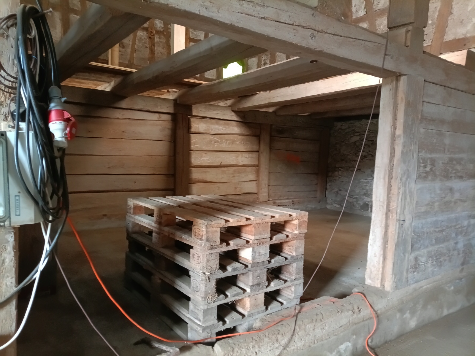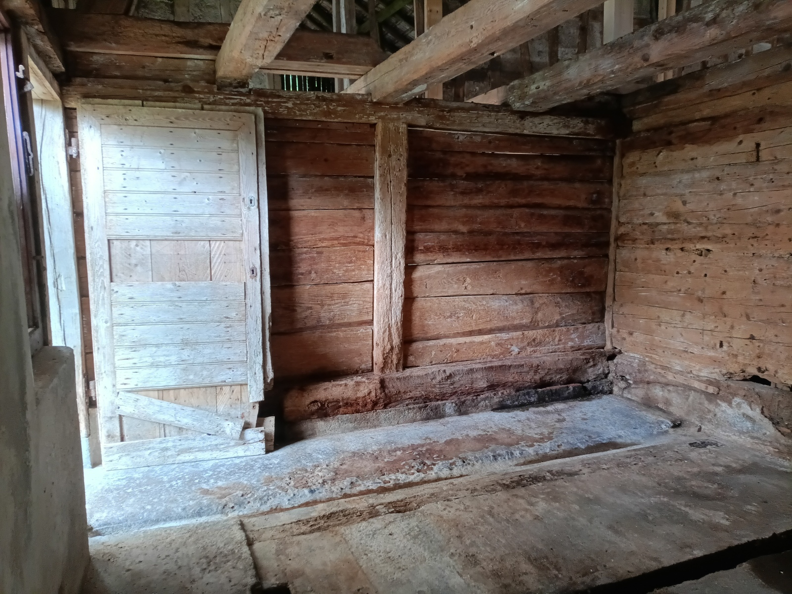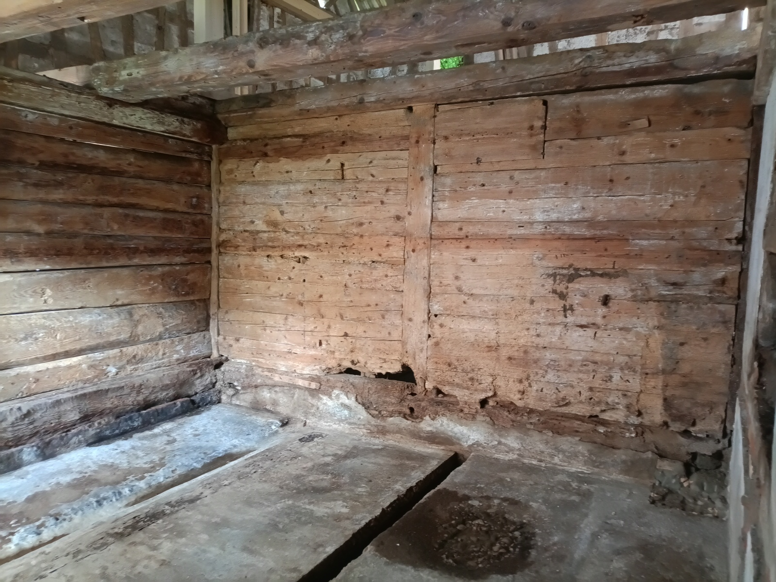 Heuspeicher rechts ->  entfernen Pavatex und Holzschwarten an den Wänden