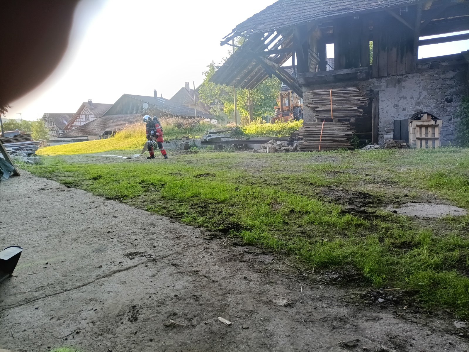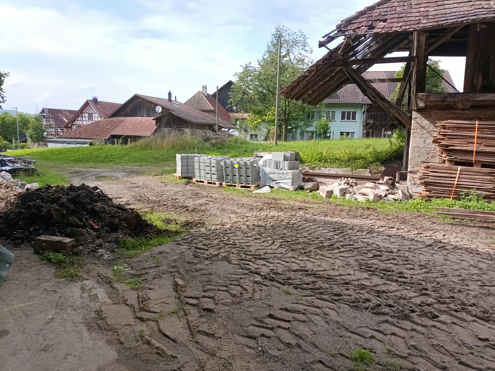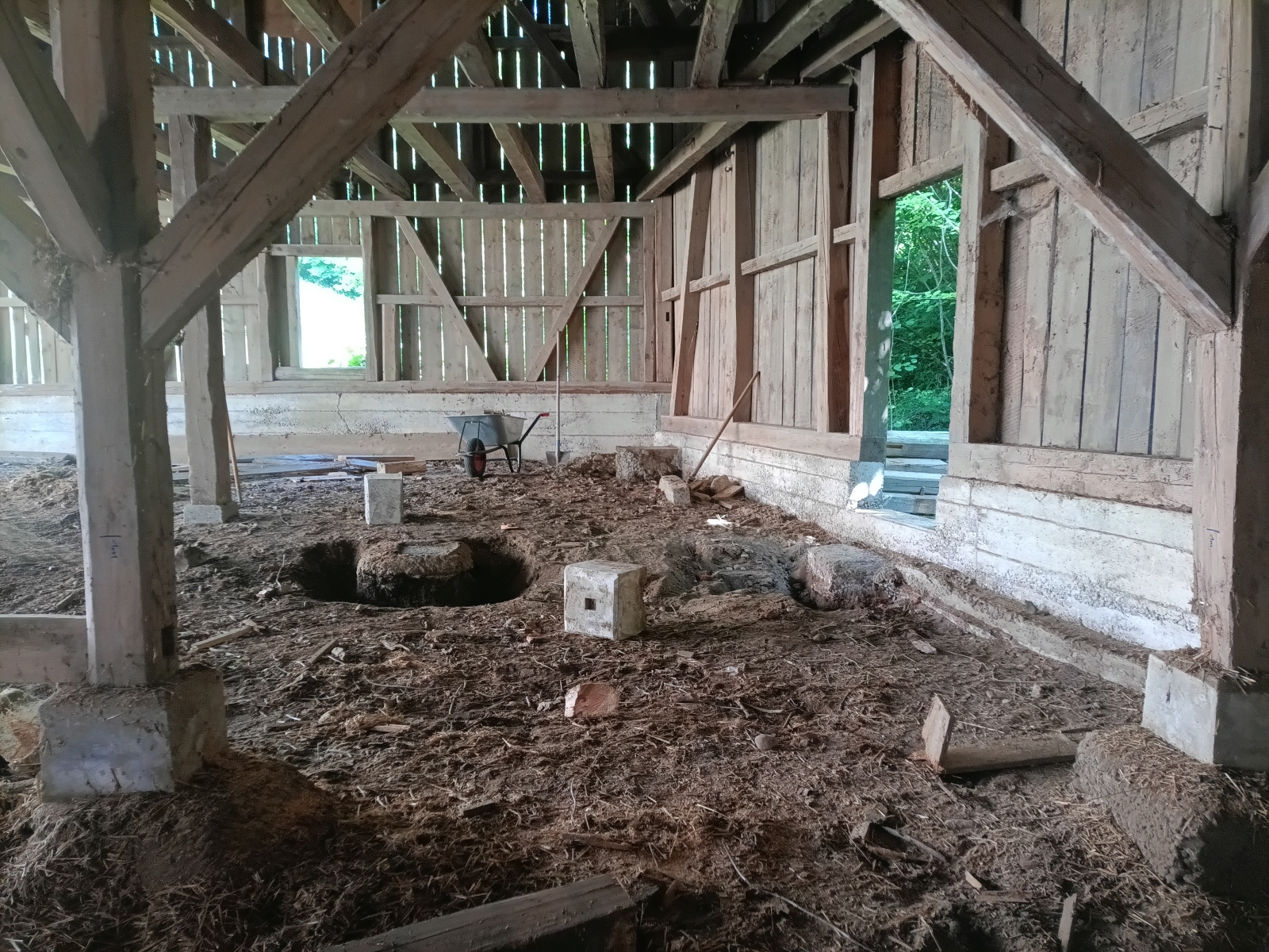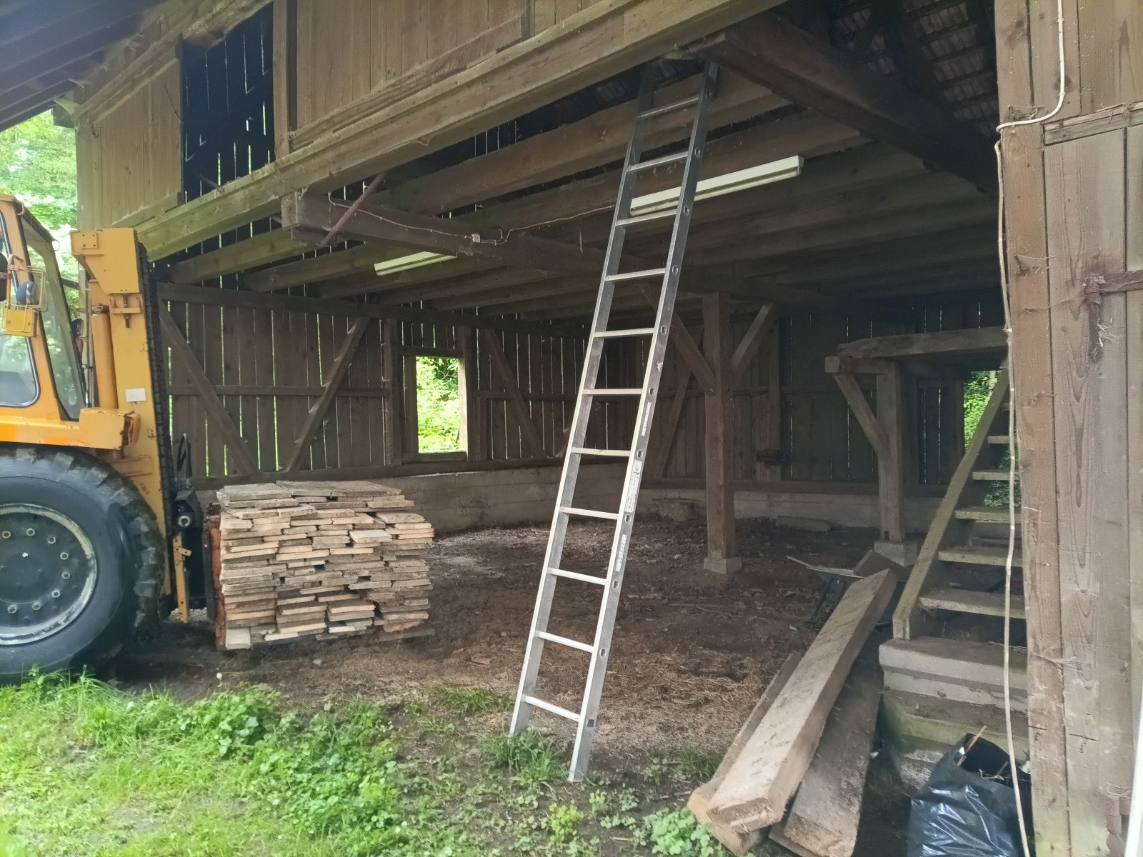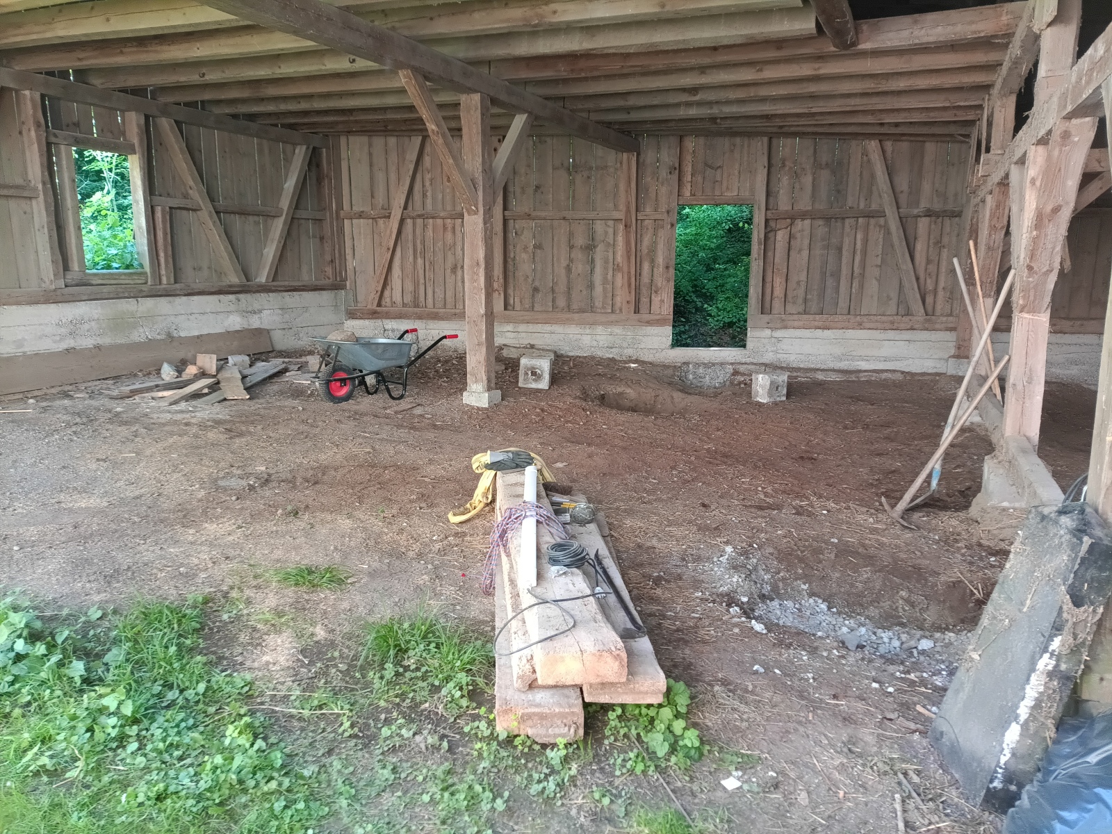 Scheune, morsche Balken entfernt, was noch brauchbar ist wird für