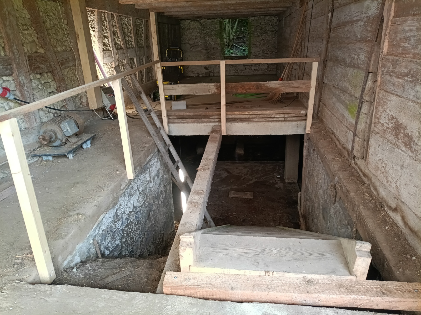 Schopf rechts -> Morscher Boden entfernen (Balken sind z.T. bereits gebrochen oder liegen nur seitlich 1cm auf