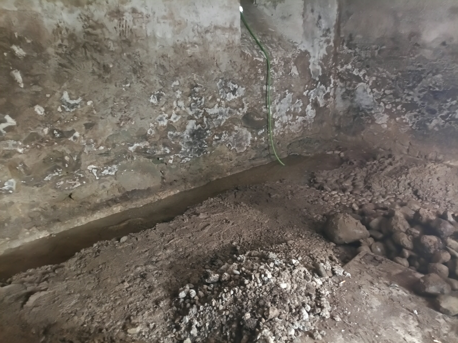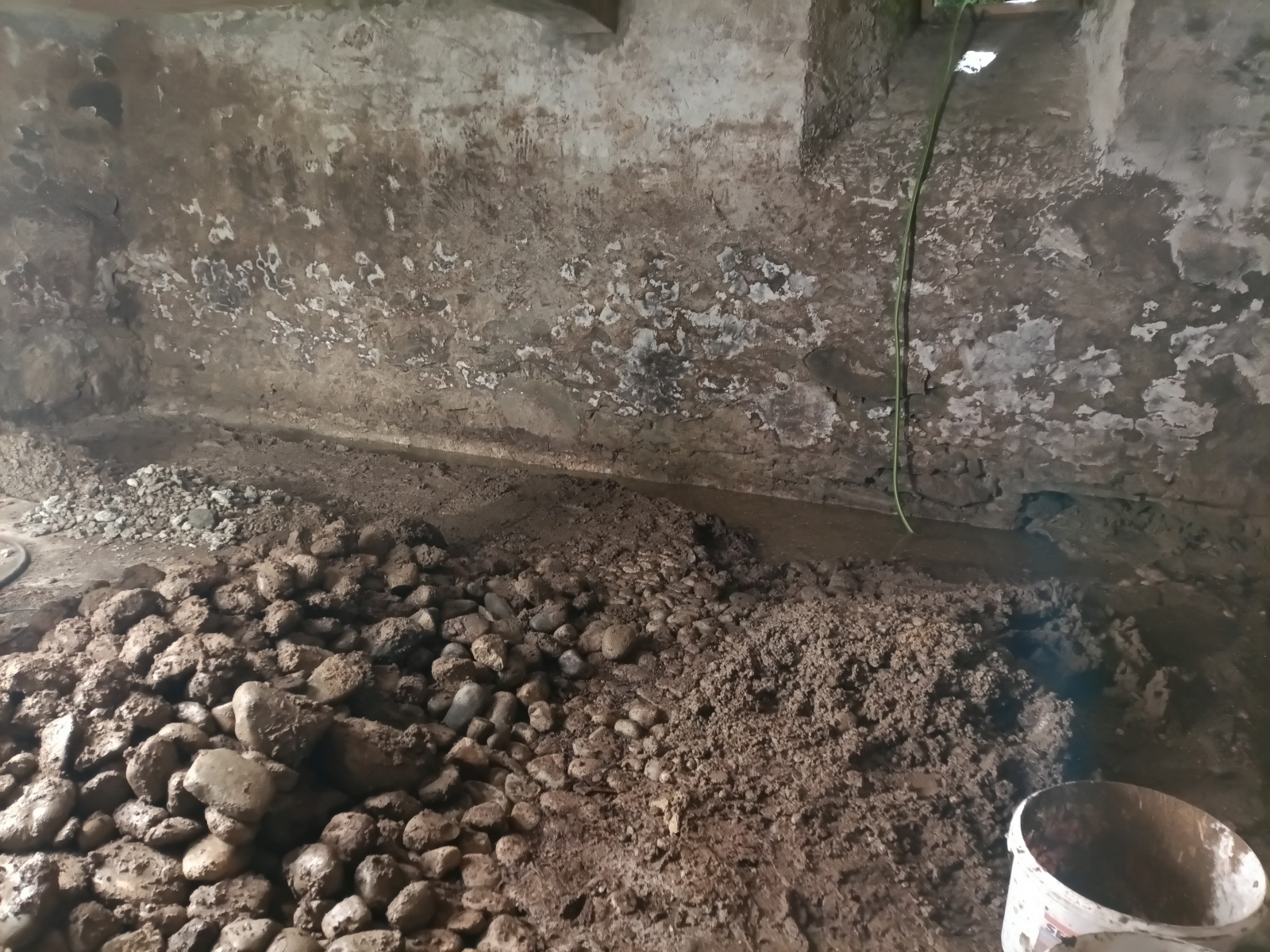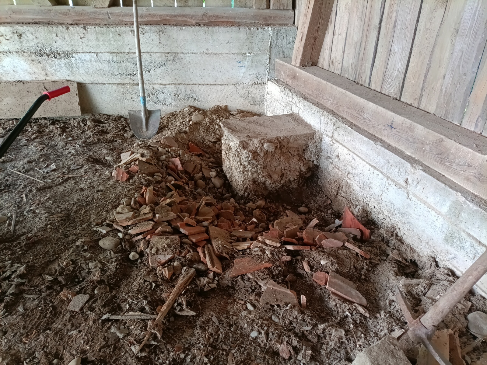 Miststock -> Wieder ein Teil mehr freigelegt, so dass Hausmauer trocknen kann
