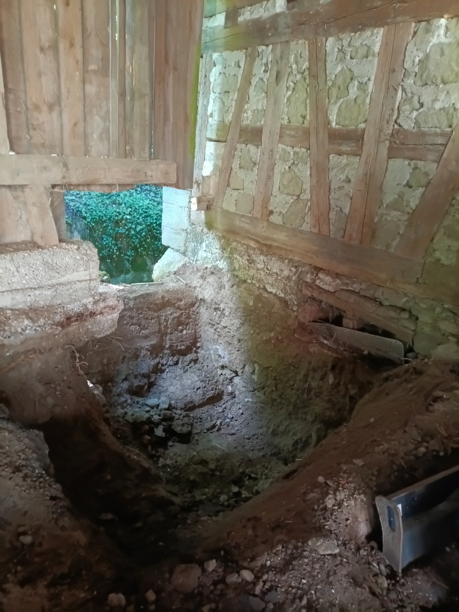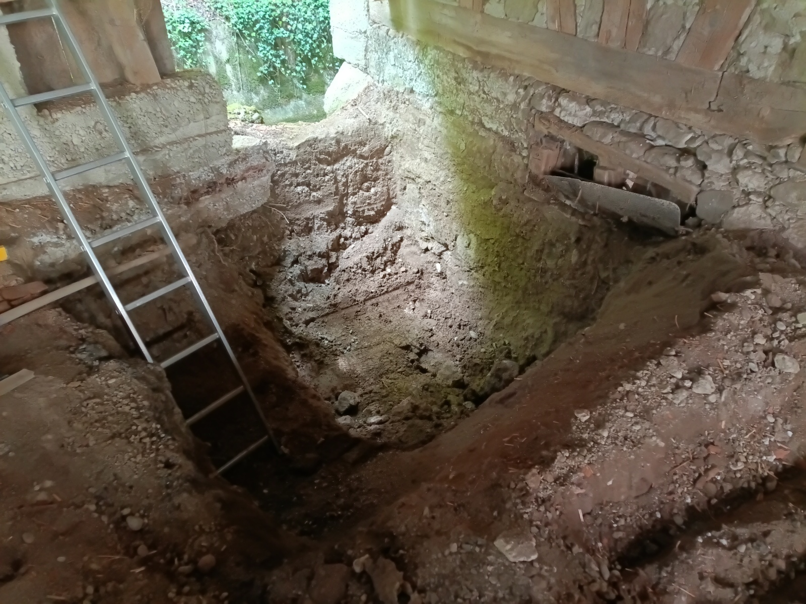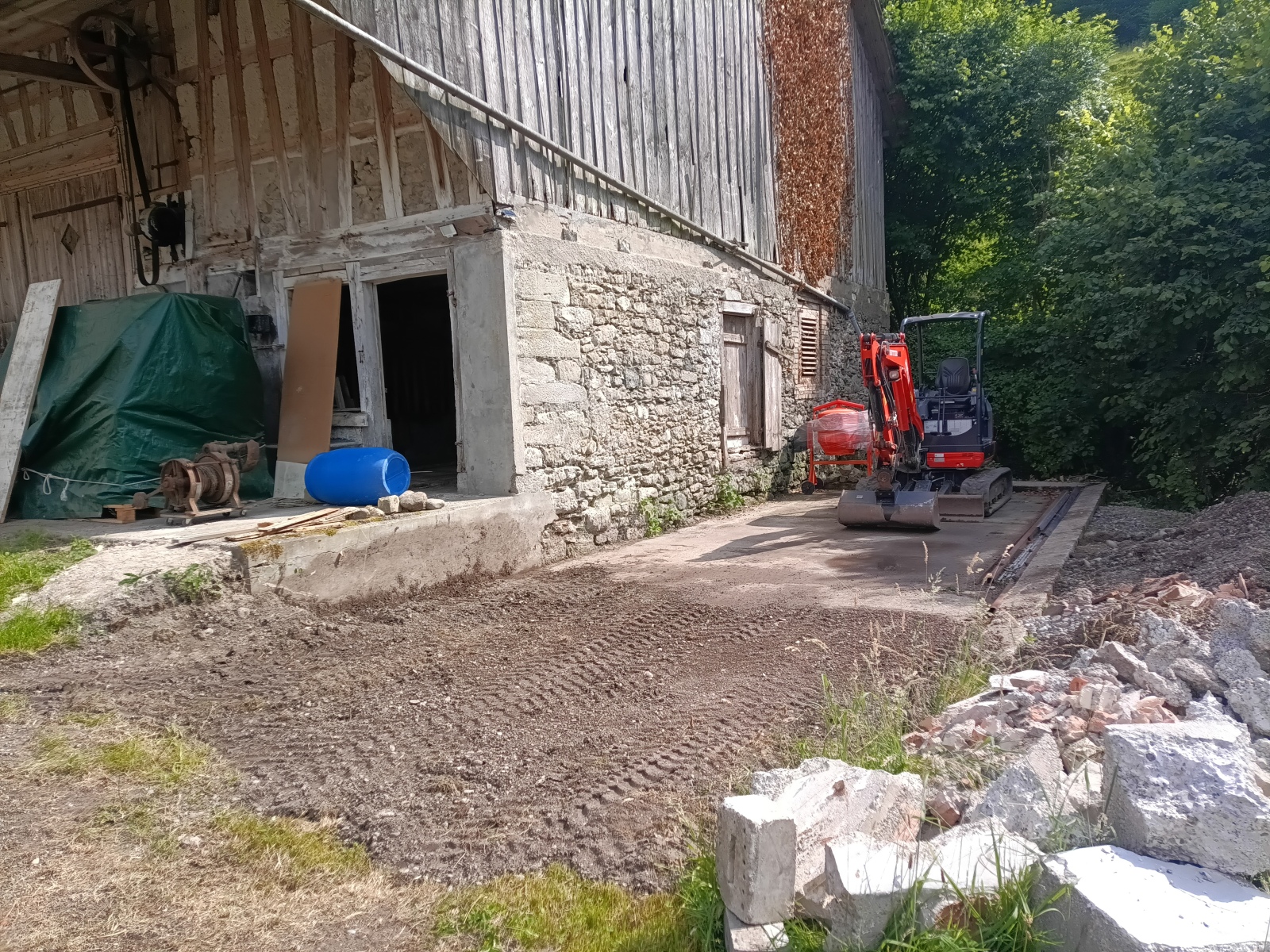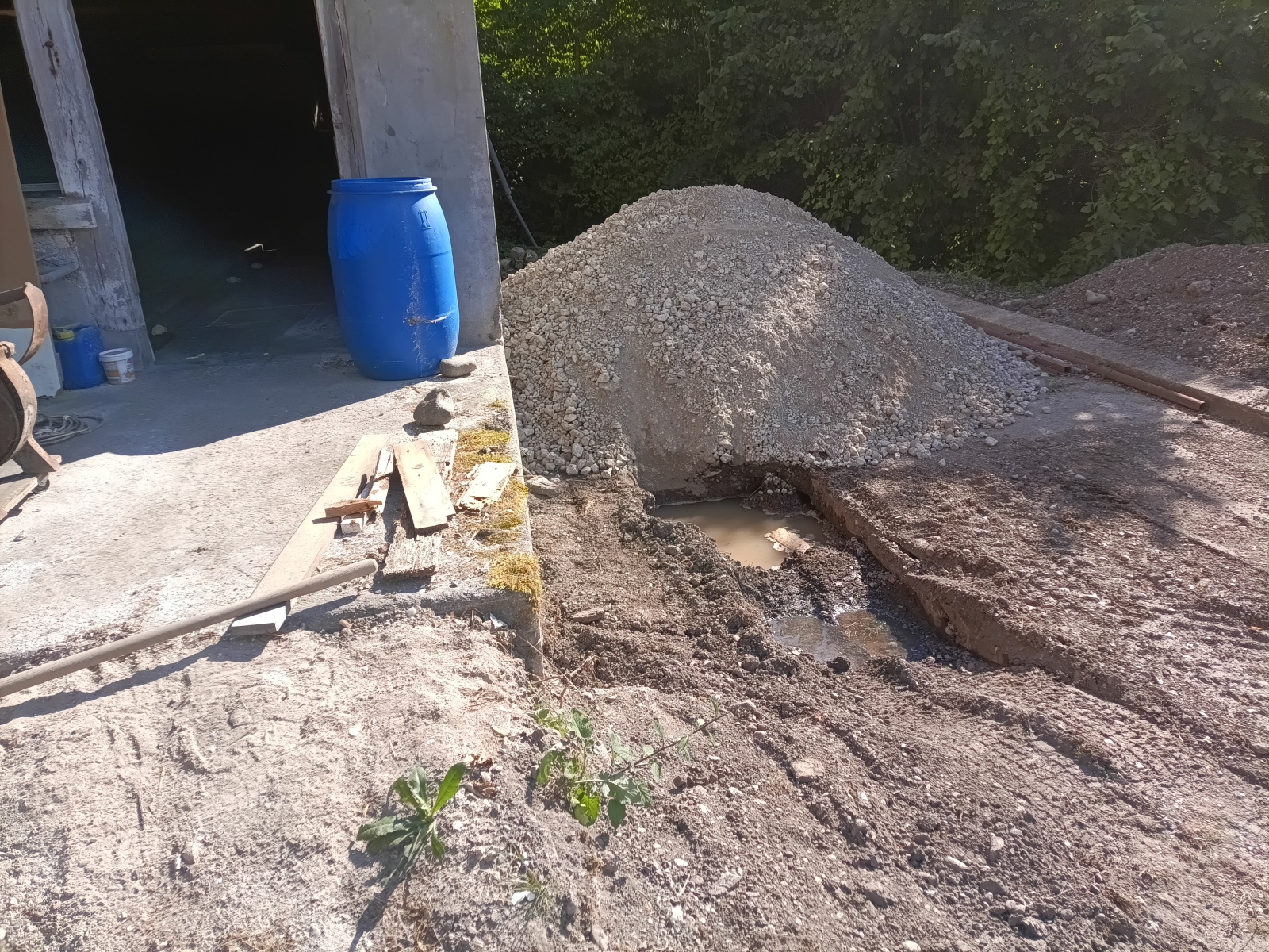 Miststock -> Wieder ein Teil mehr freigelegt, so dass Hausmauer trocknen kann