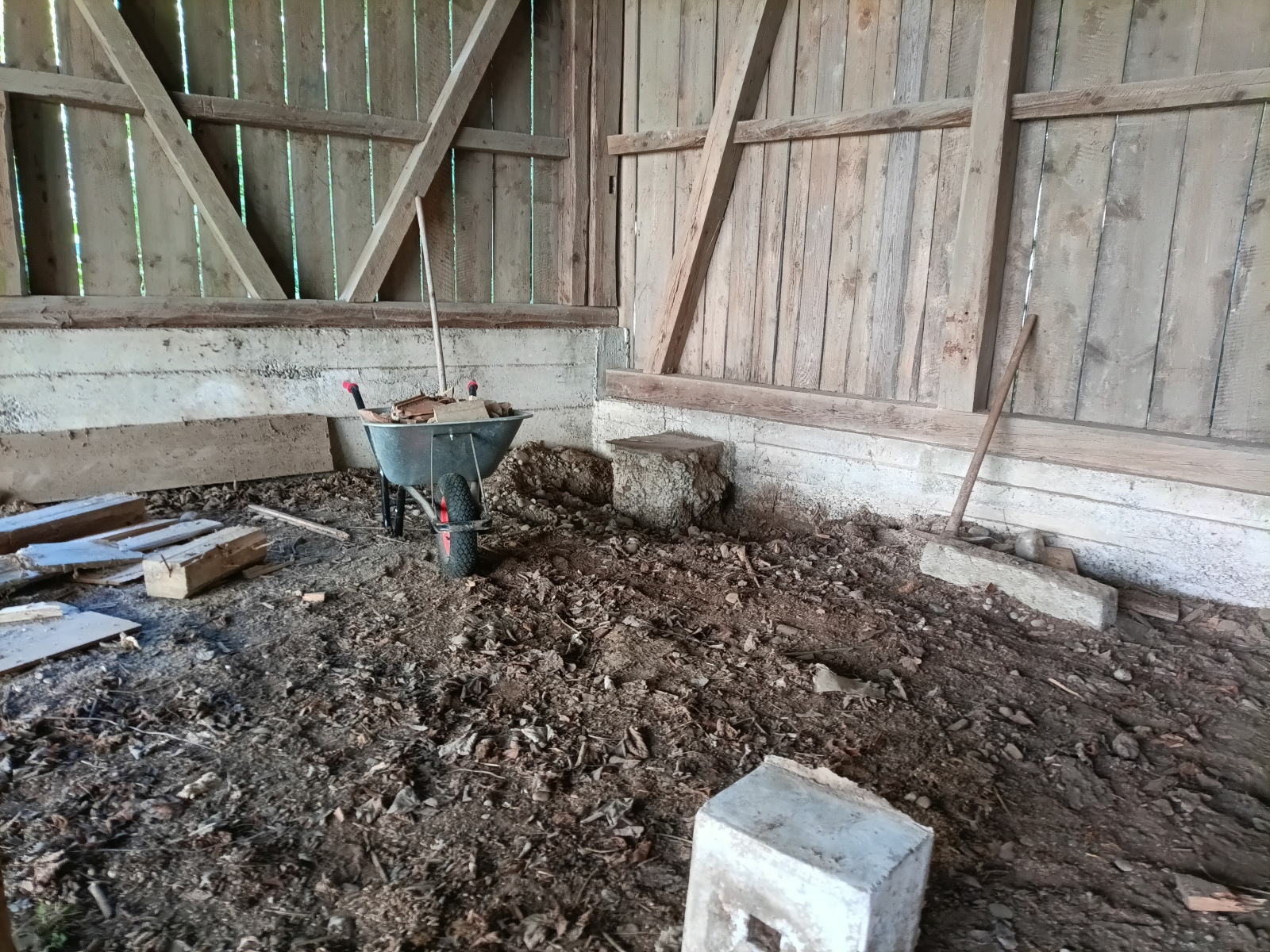Stall links -> Mehrfachböden sind weg und Wände von Pavatex und Isolation befreit