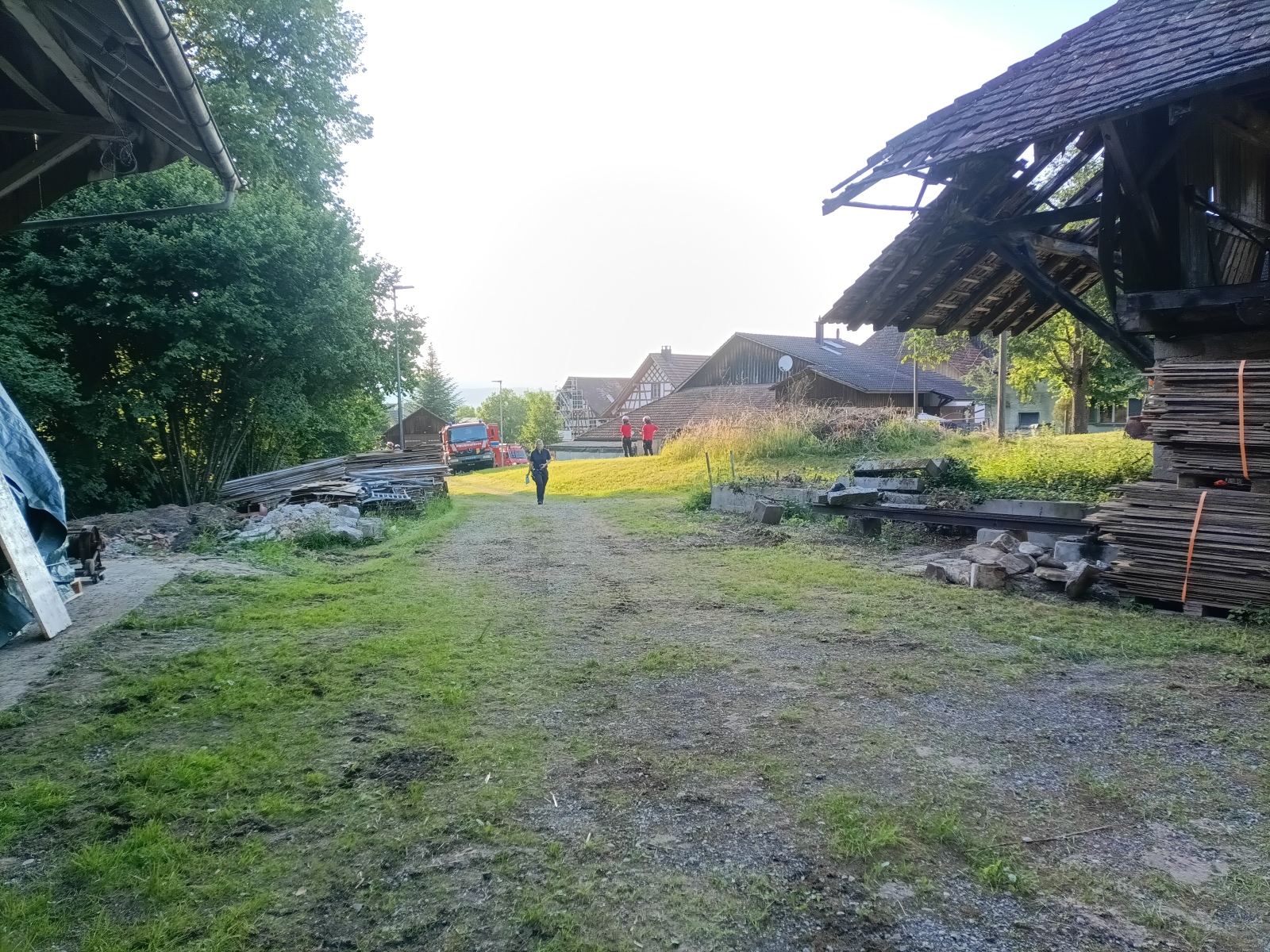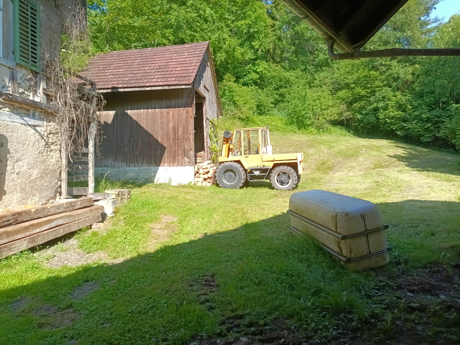 Rodungsarbeiten bei Sägerei, Miststock, Schopf