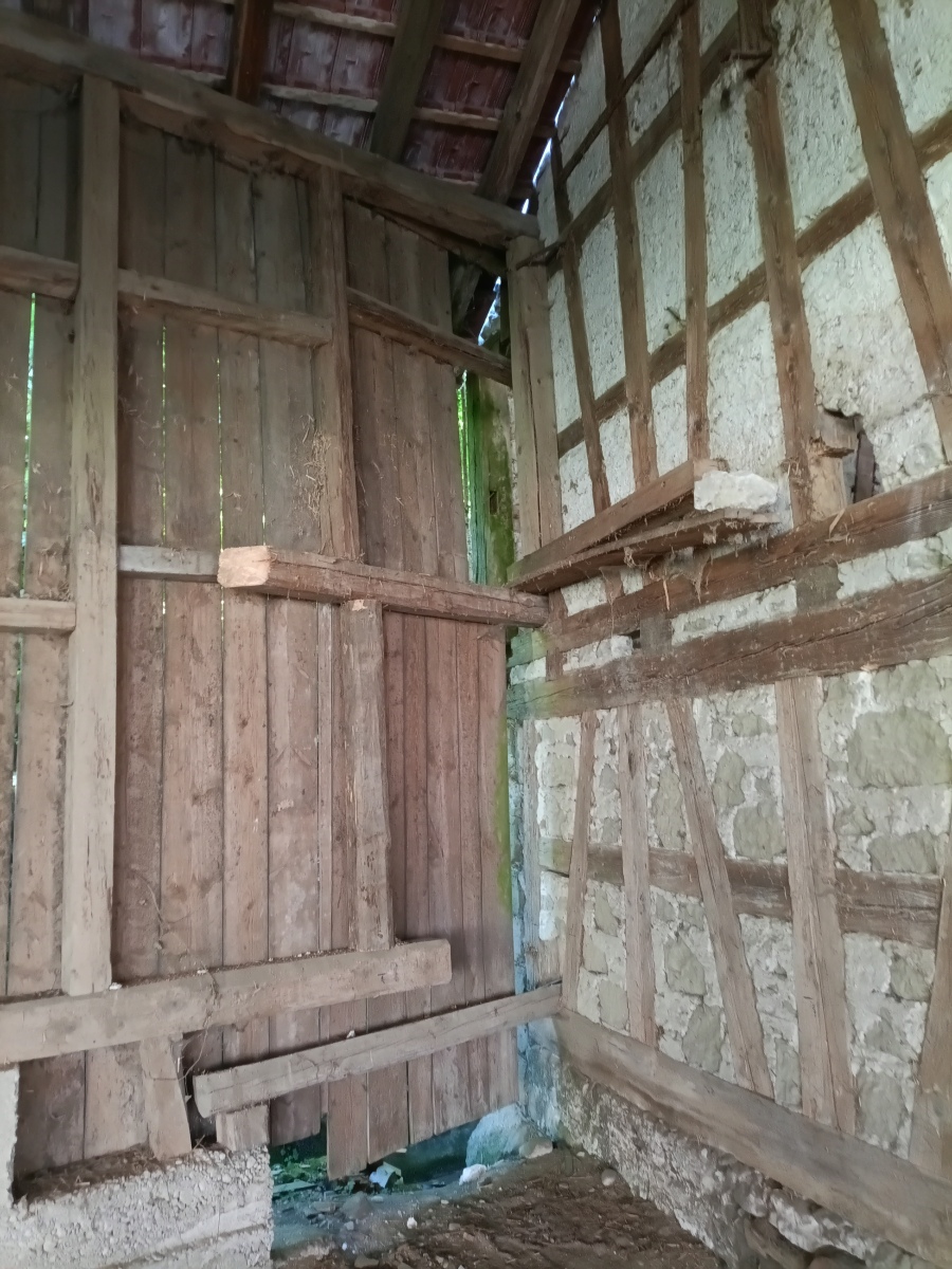 Da Quer- und Spannhölzer im Dachstuhl abgeschnitten wurden, neigen sich Fachwerkwände nach aussen !!!!