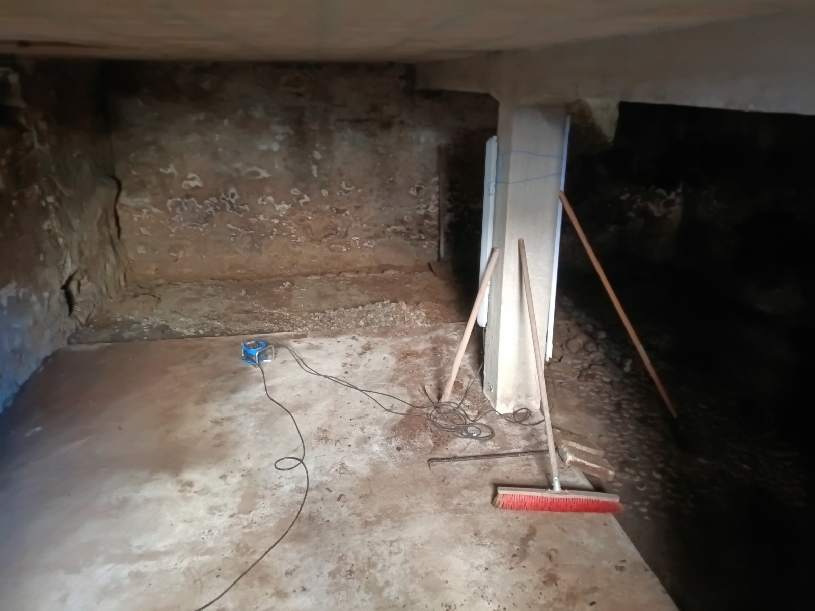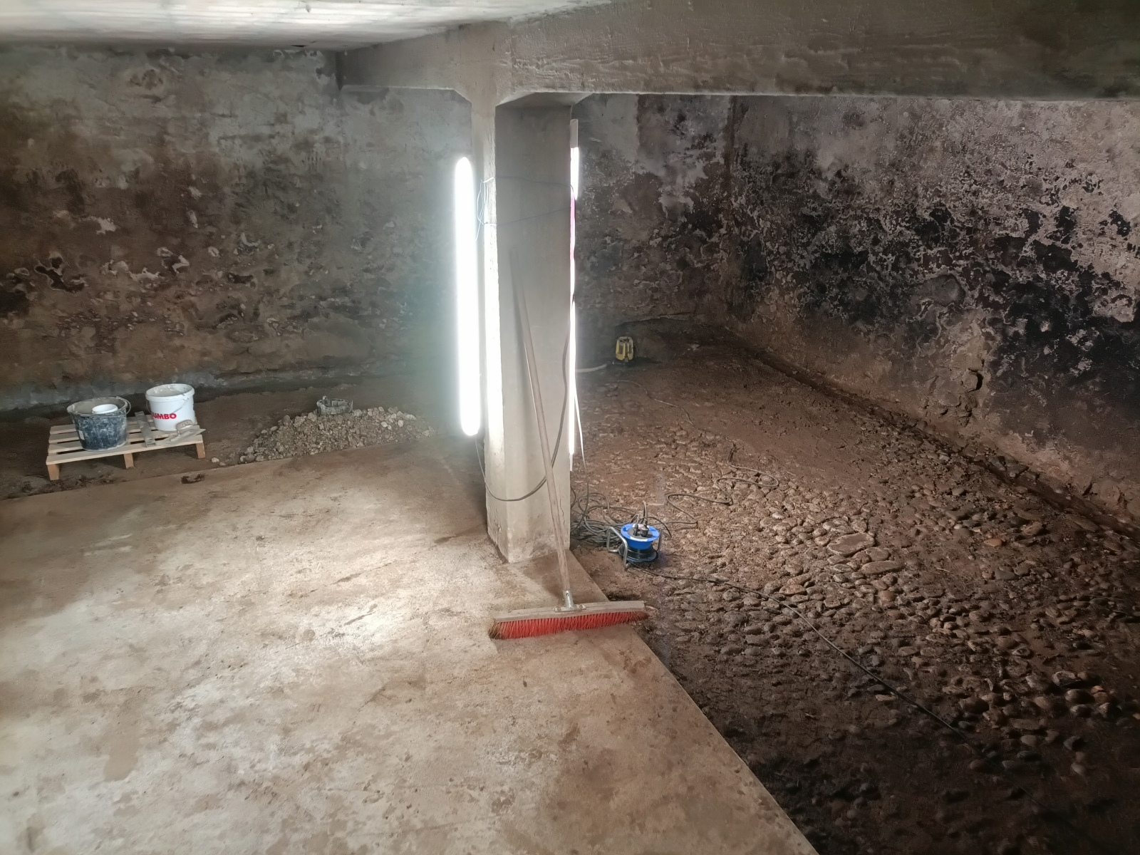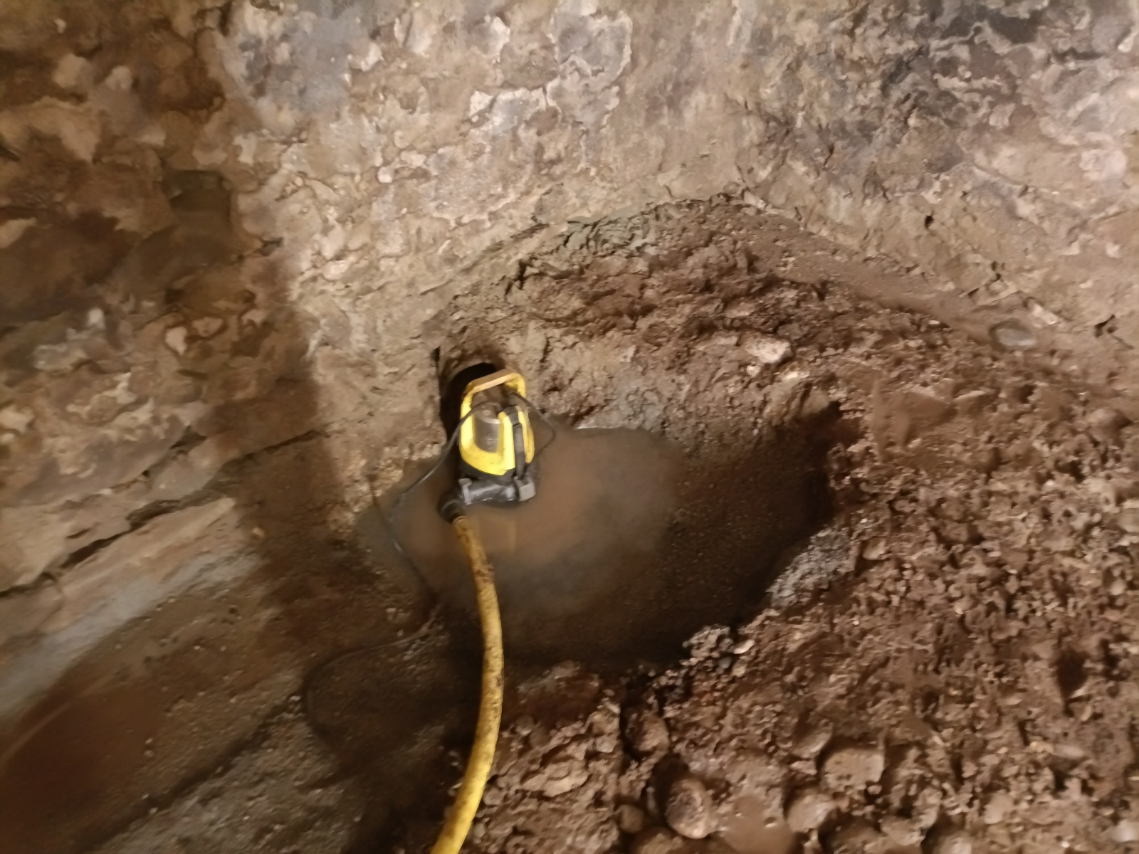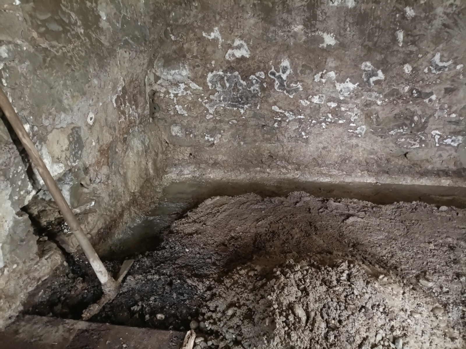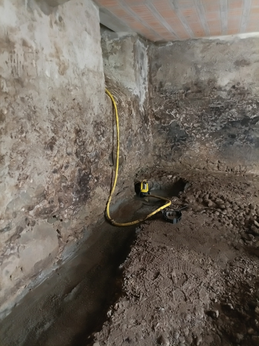 Rübenkeller, beginn Abdichtversuch und Pumpensumpf.