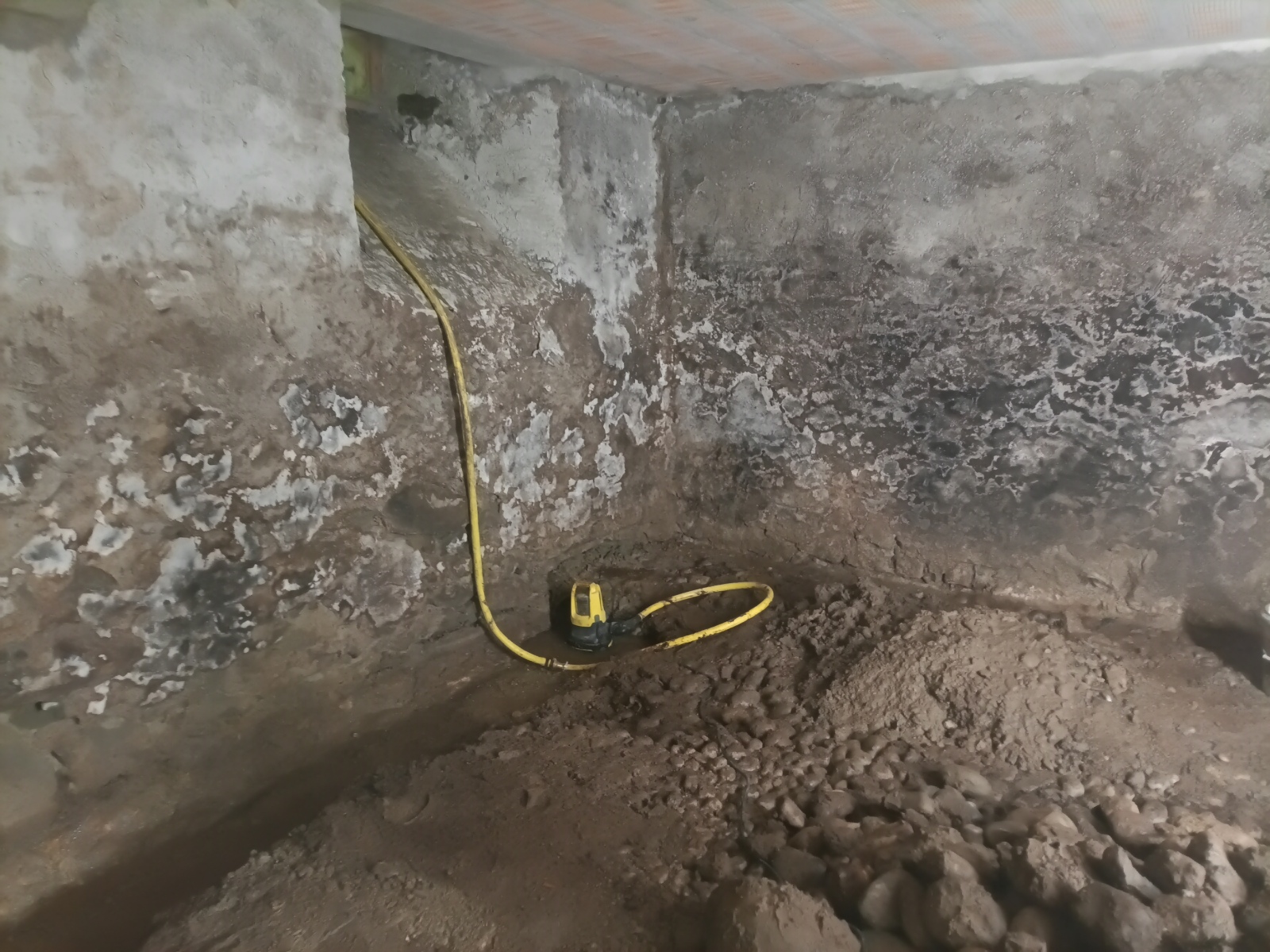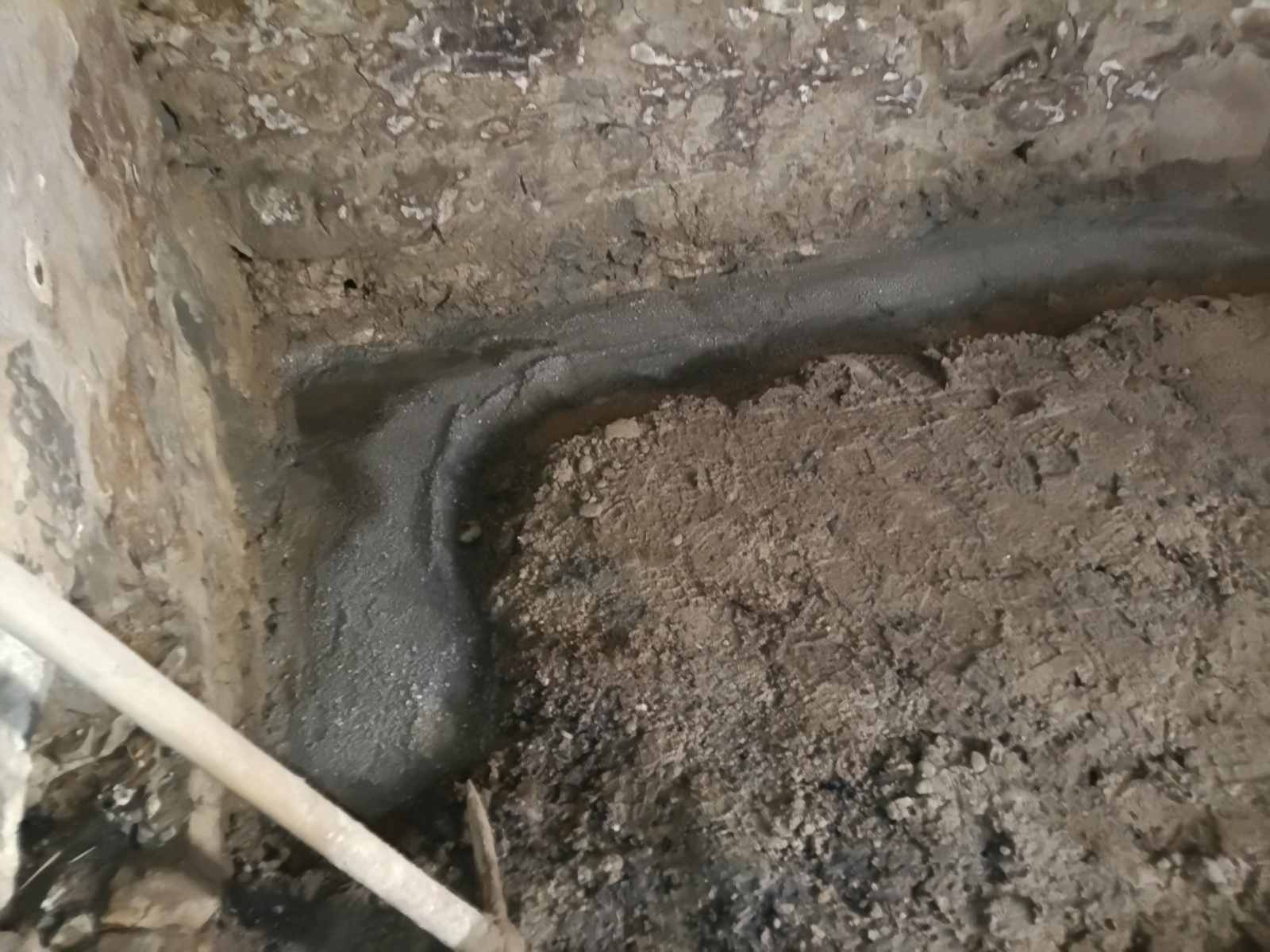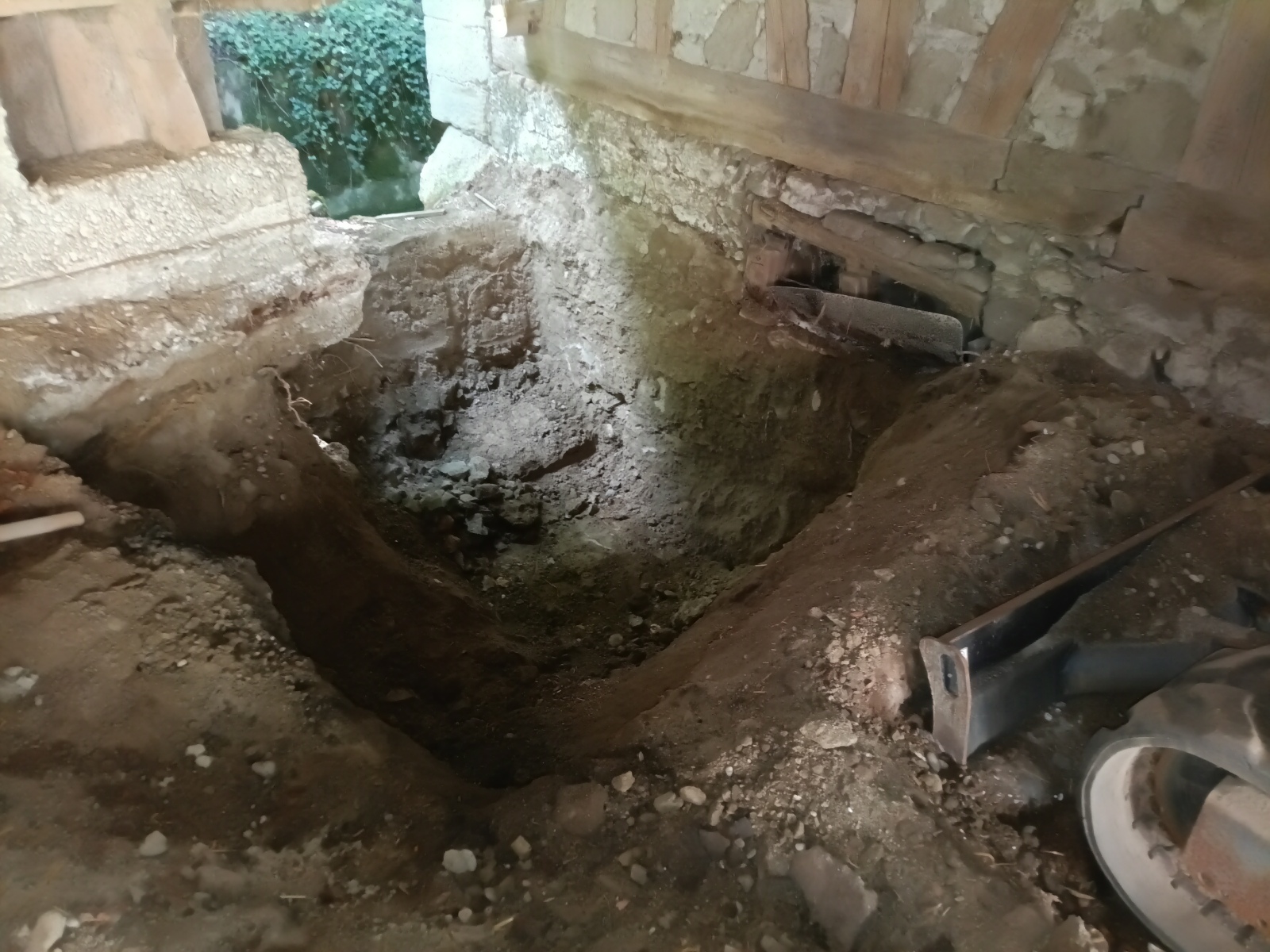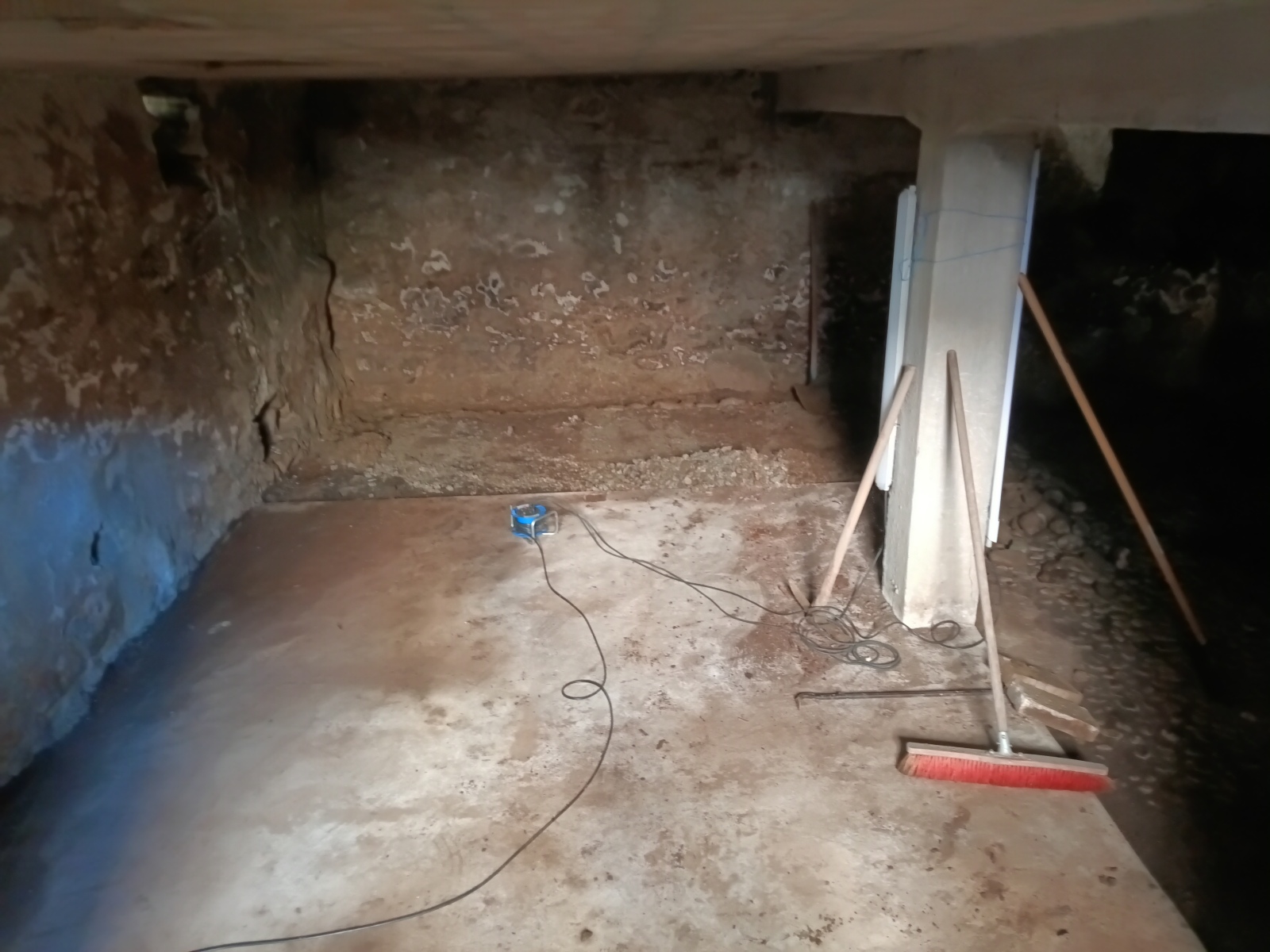 Rübenkeller, beginn Abdichtversuch und Pumpensumpf.