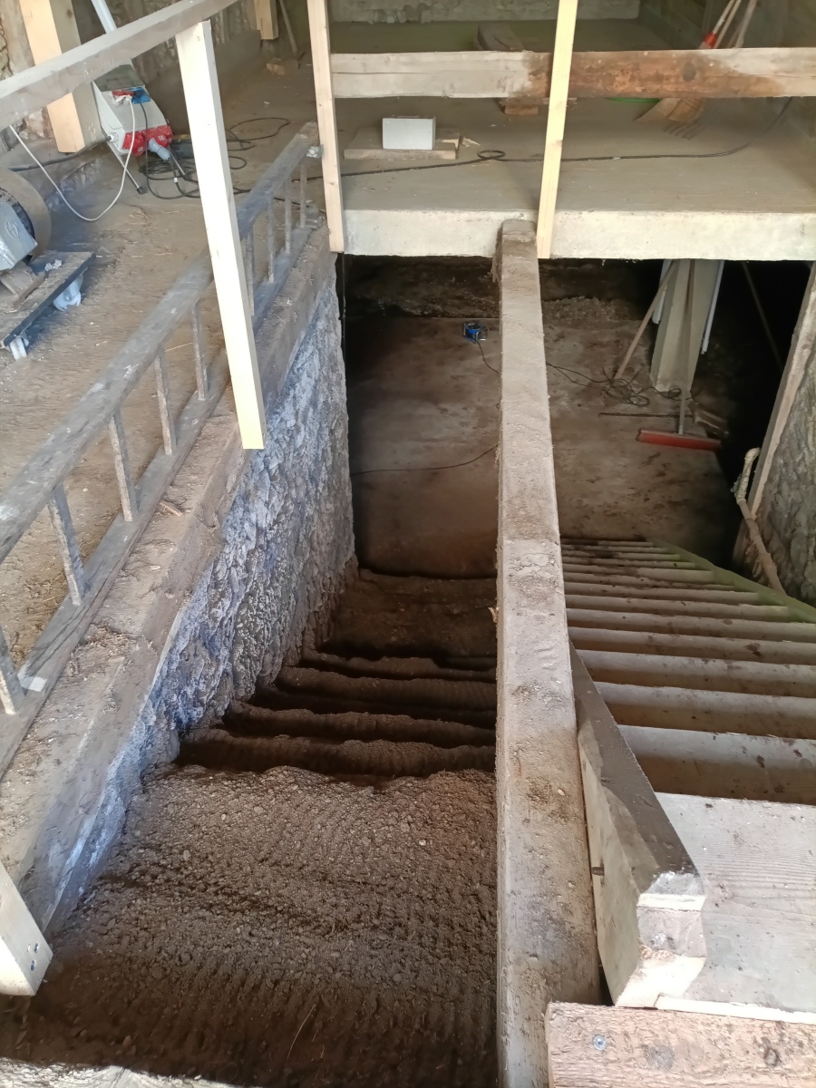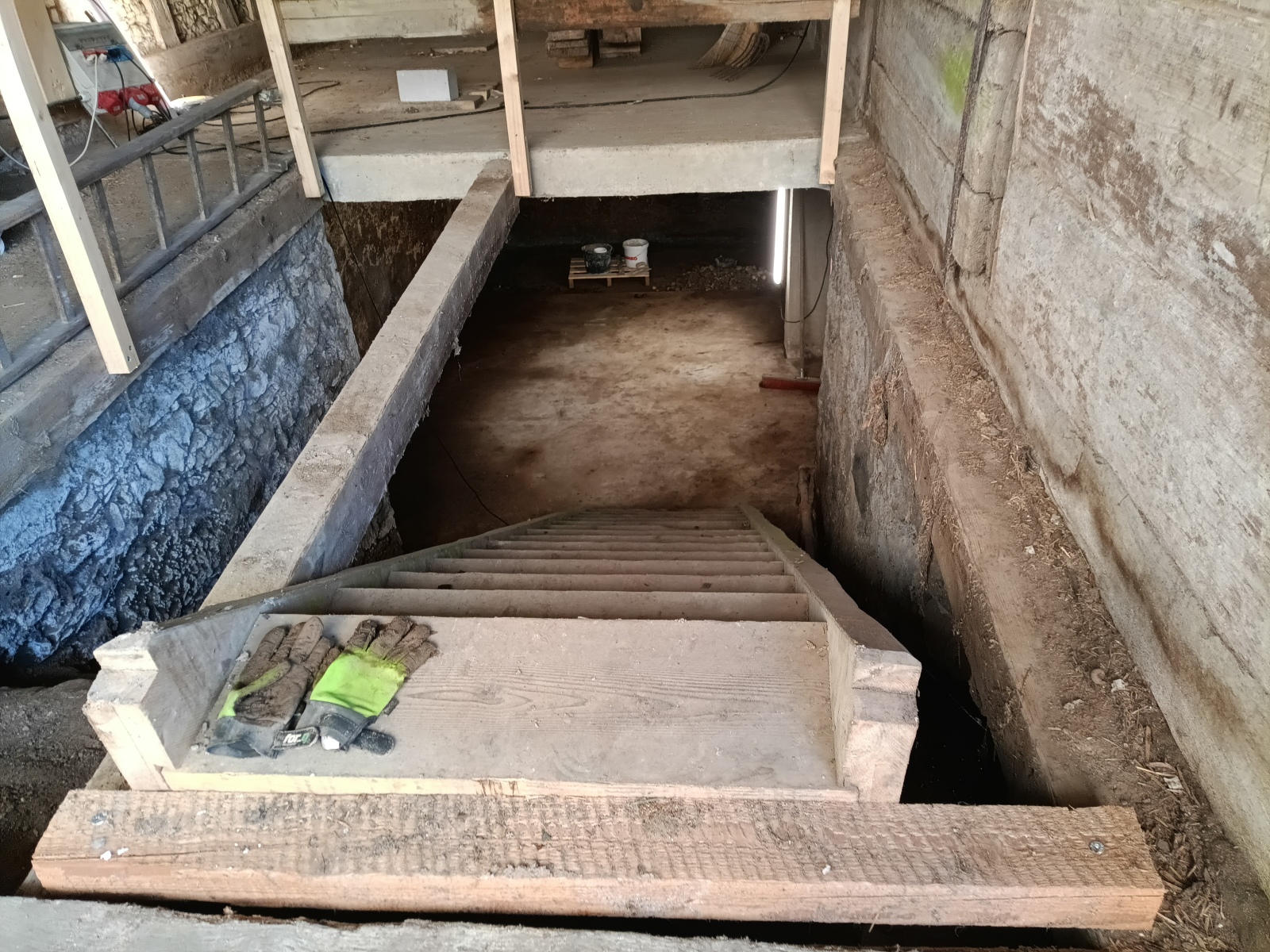Treppe aus Scheune abgebaut und im Rübenkellerabgang prov. montiert