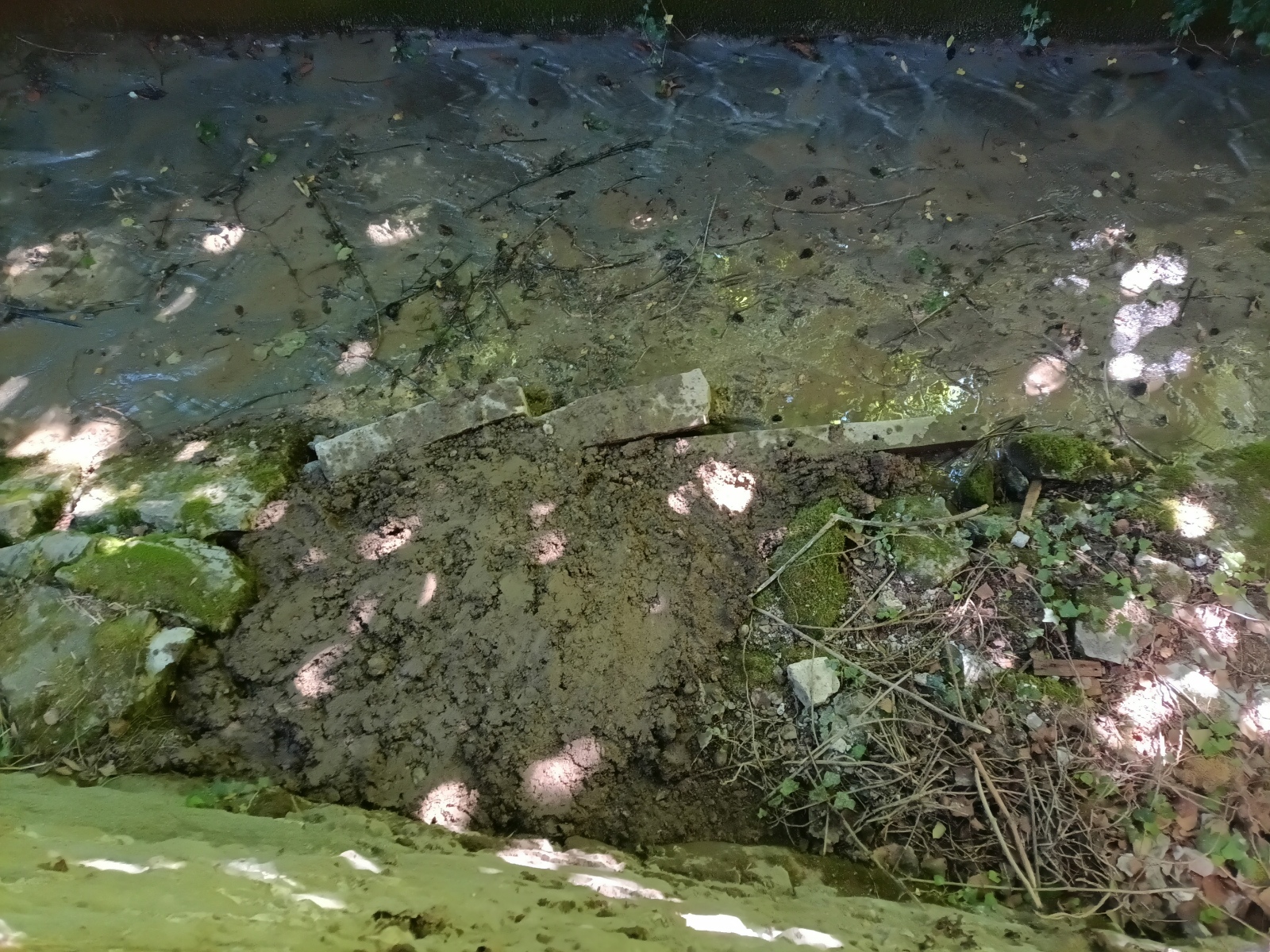 Abwasser -> im Hoff unter einer Moos-Schicht den offiziellen Abwasserschacht gefunden. beim Hydranten an der