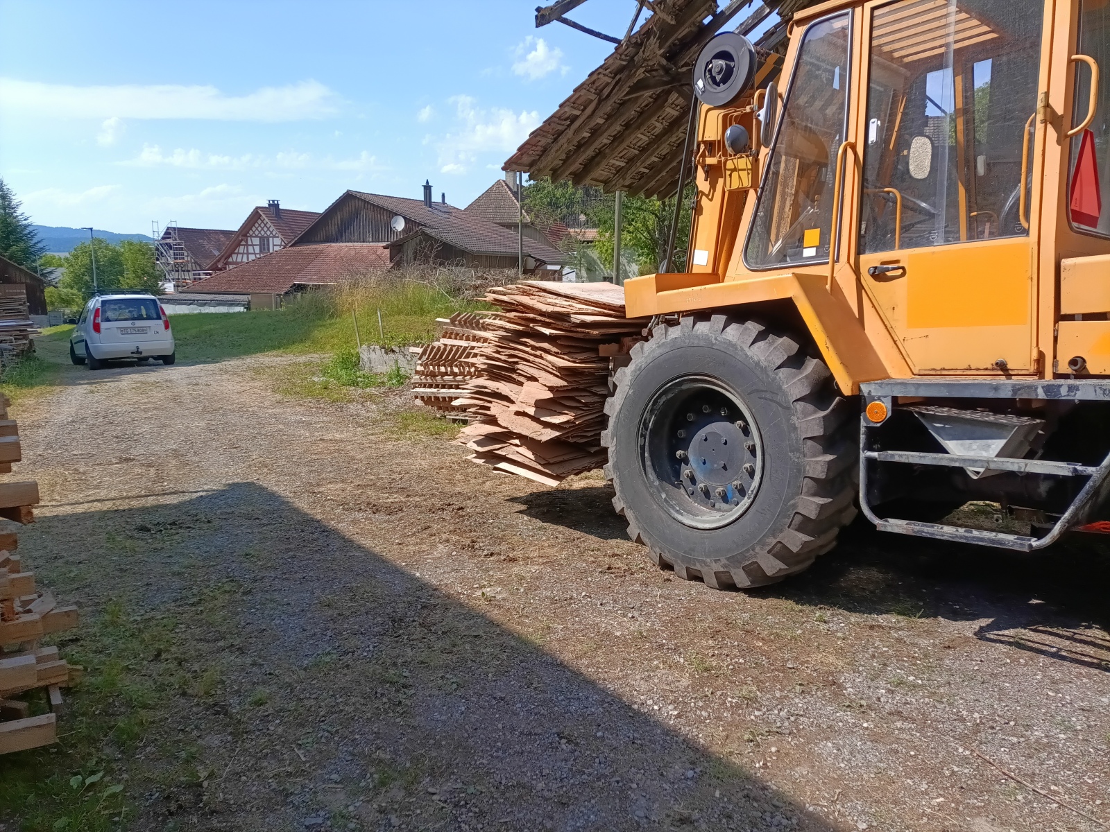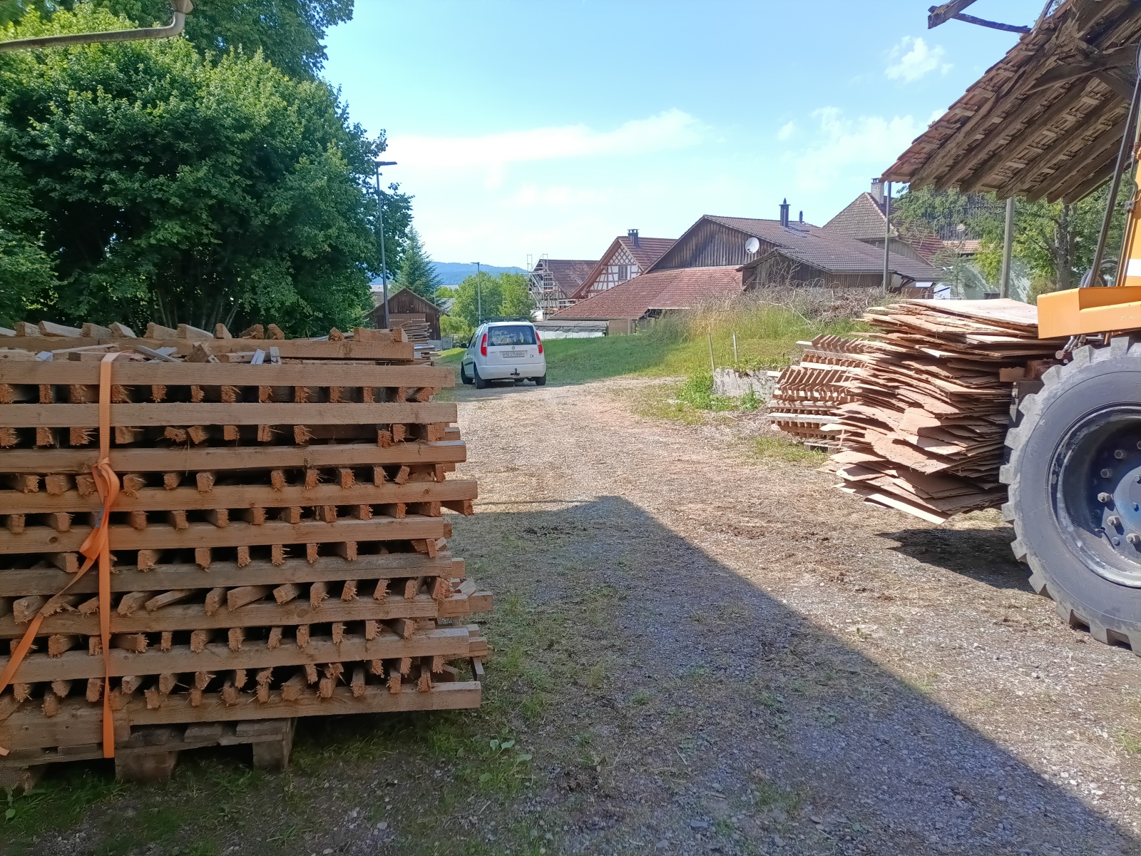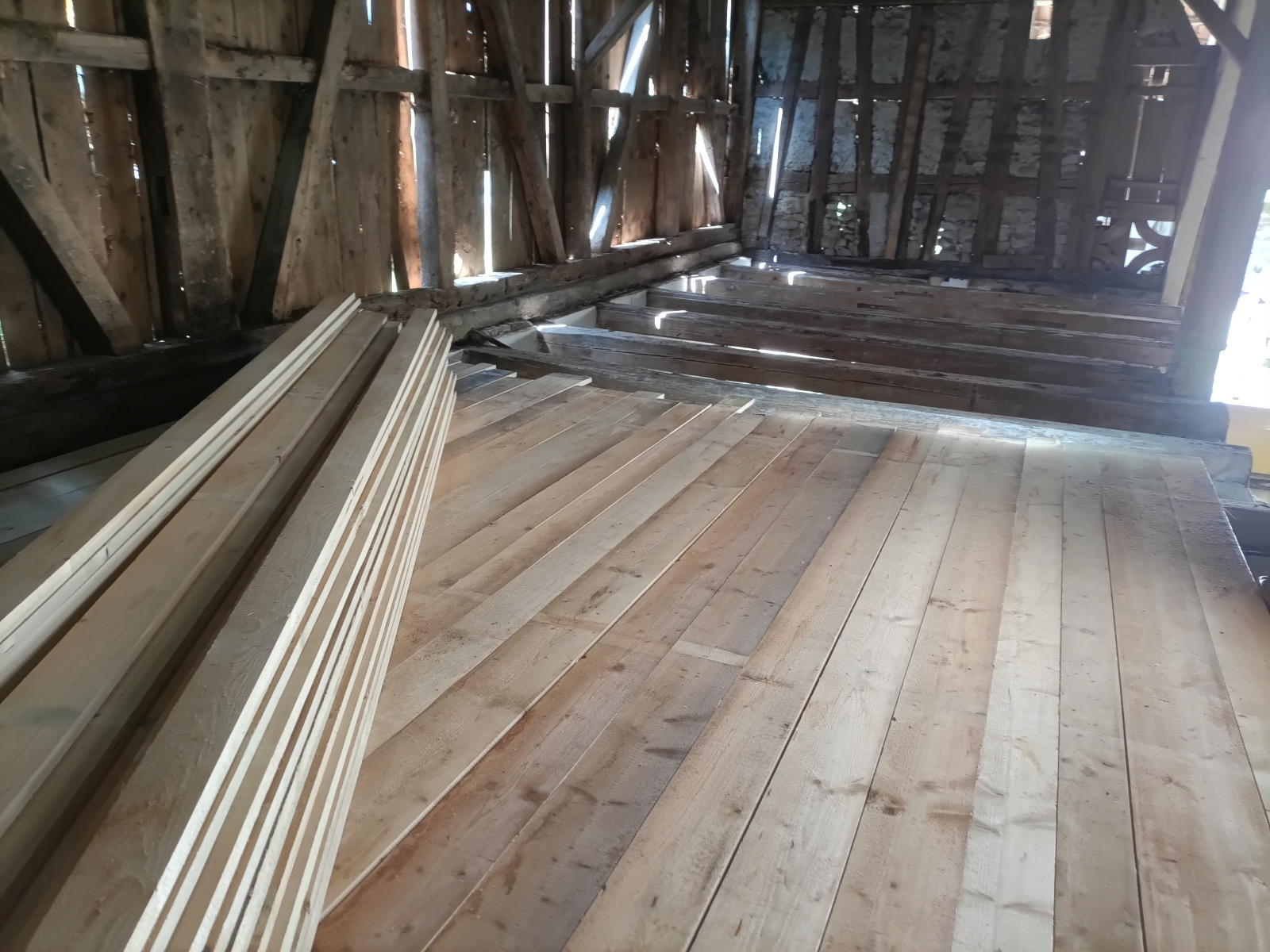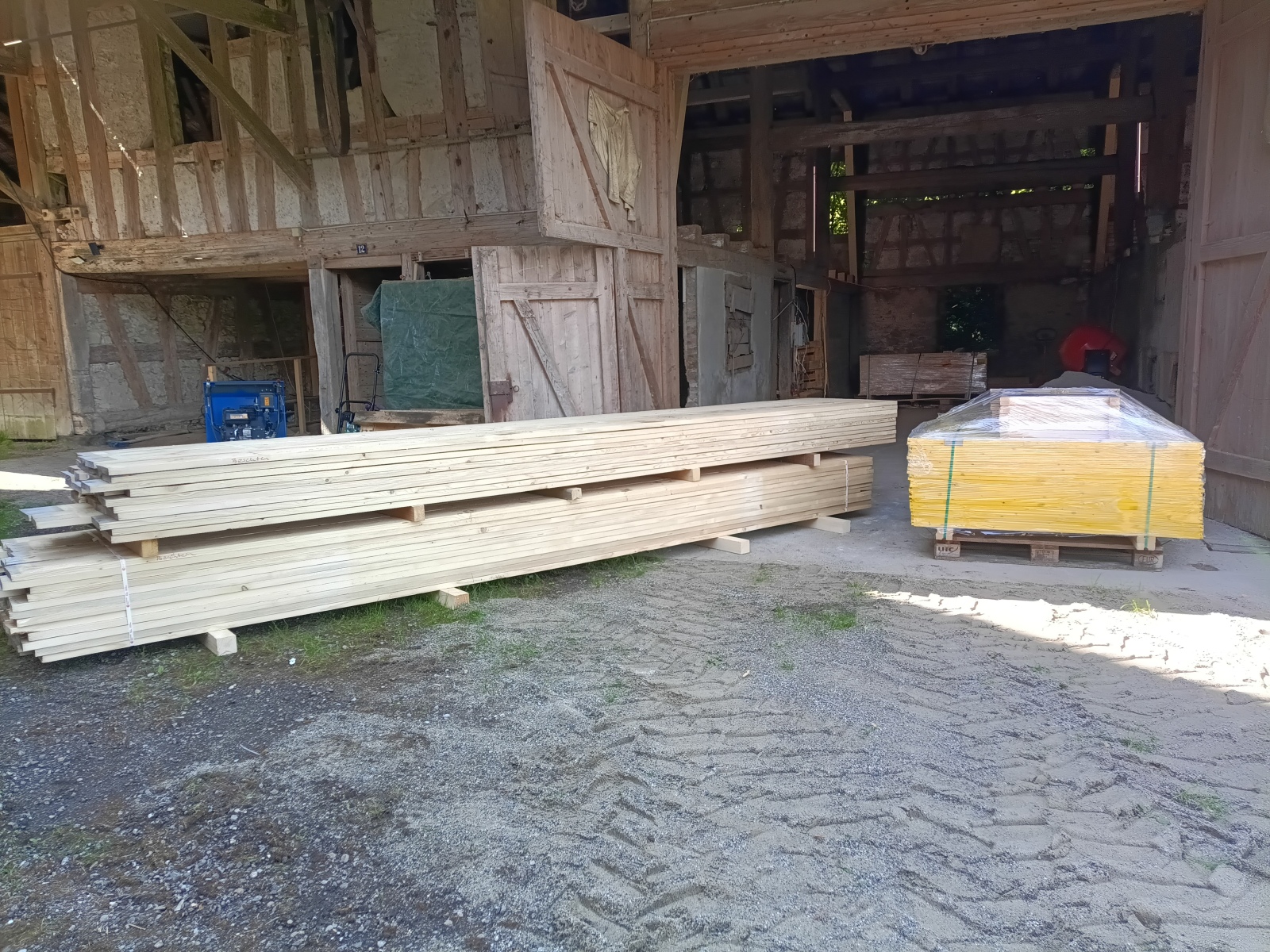 Holzlieferung (Dielenbretter ungehobelt und Balken für prov. Tenne-Verbindung)