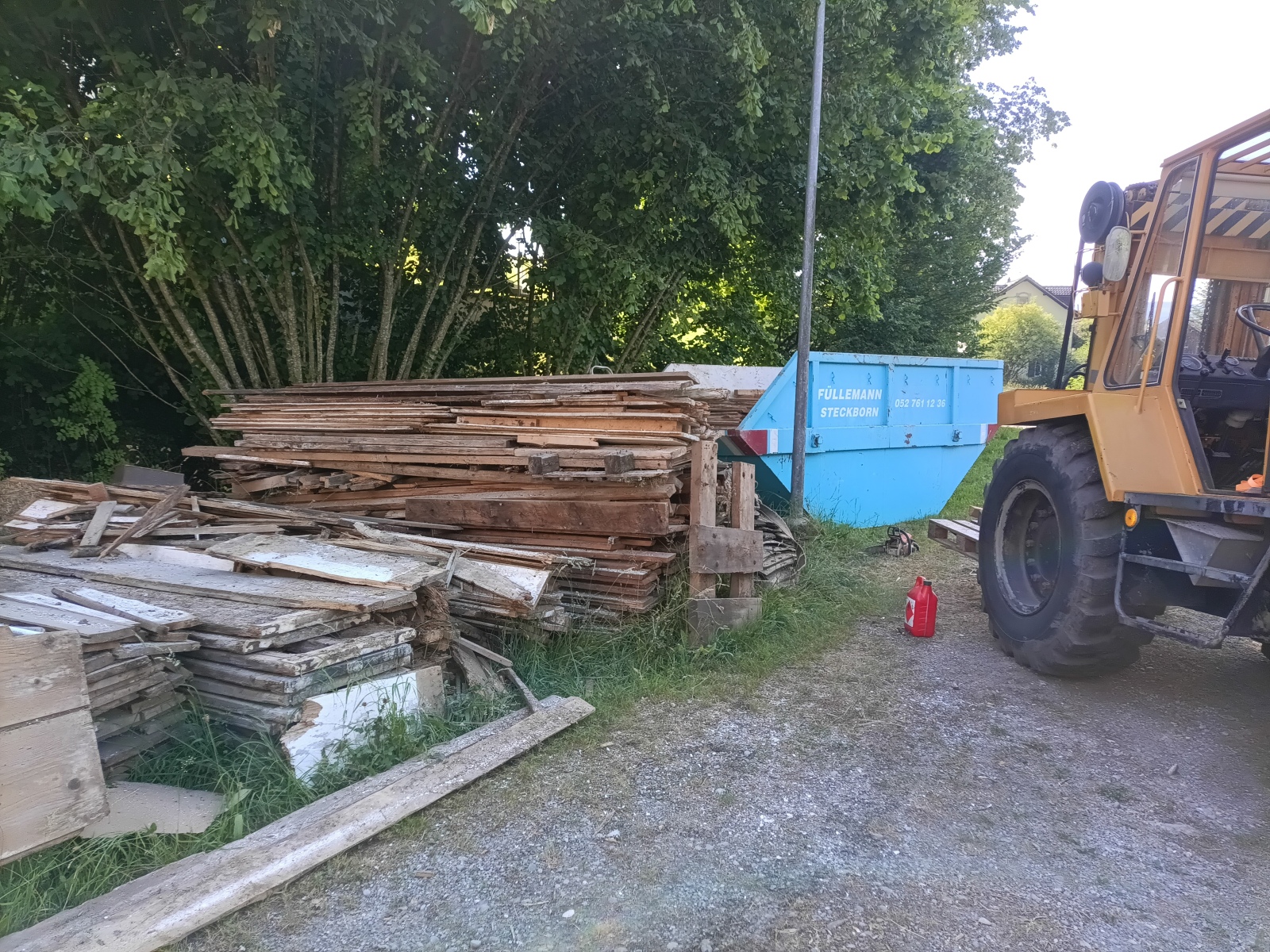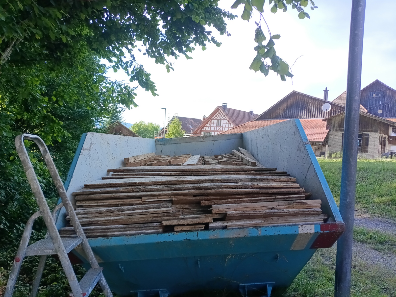 Mulde mit Abfallholz beladen, phuuuu …….,