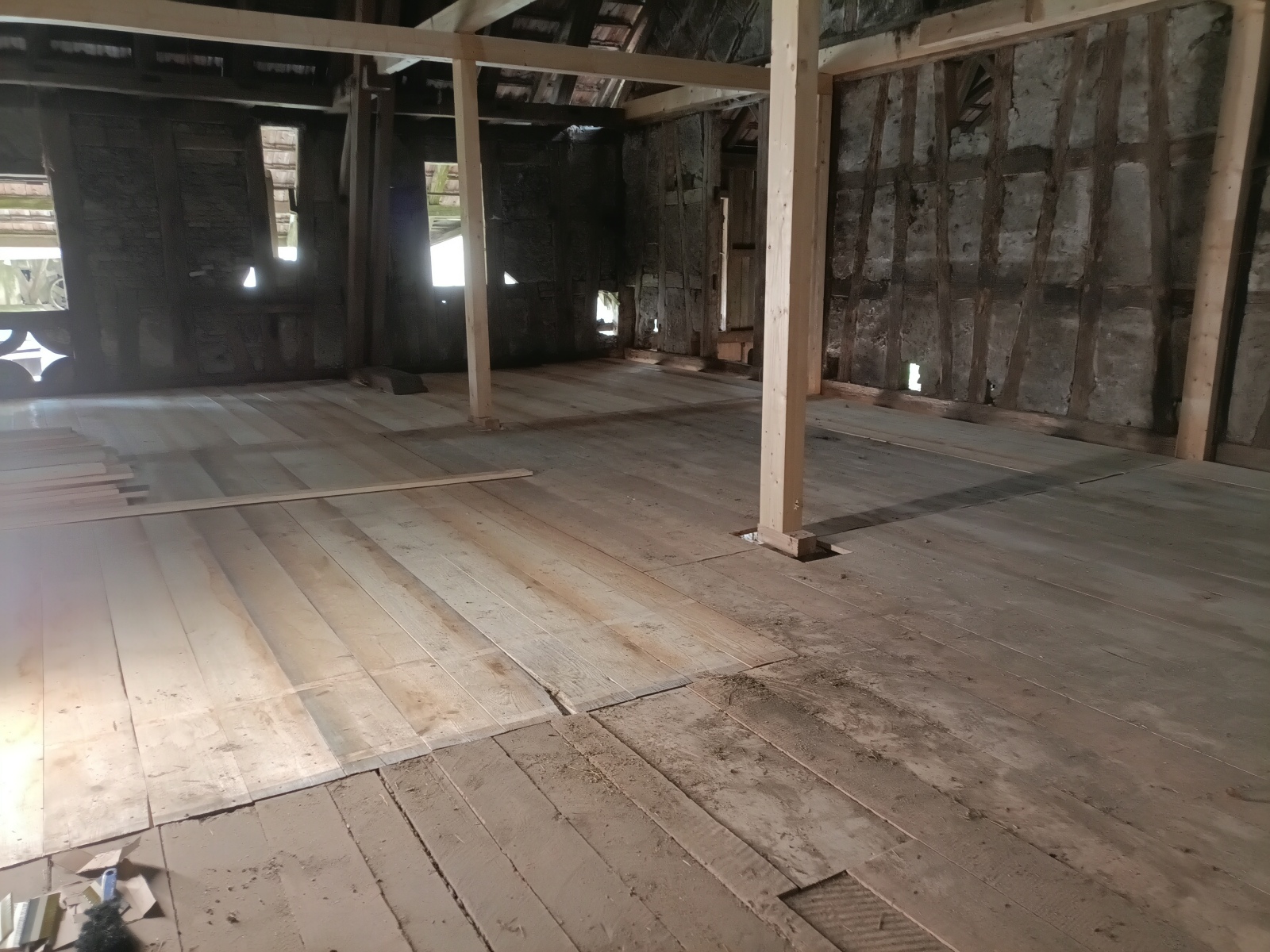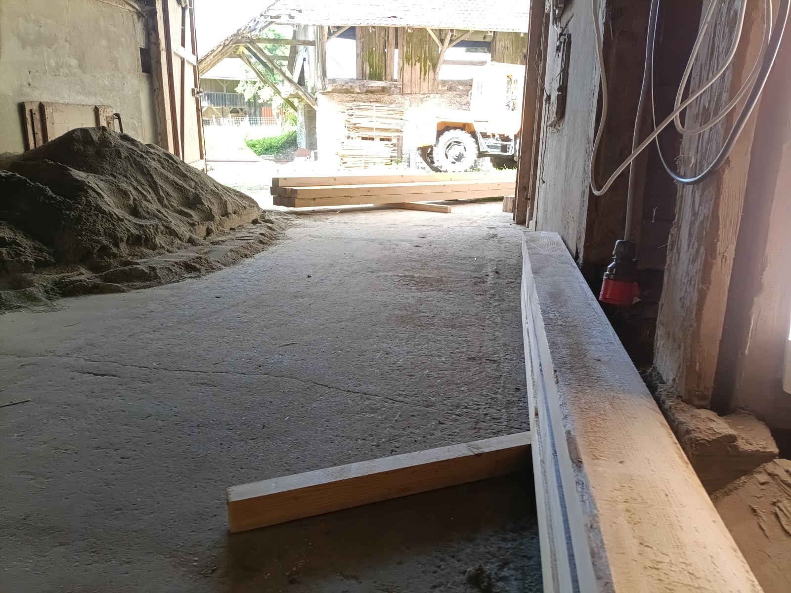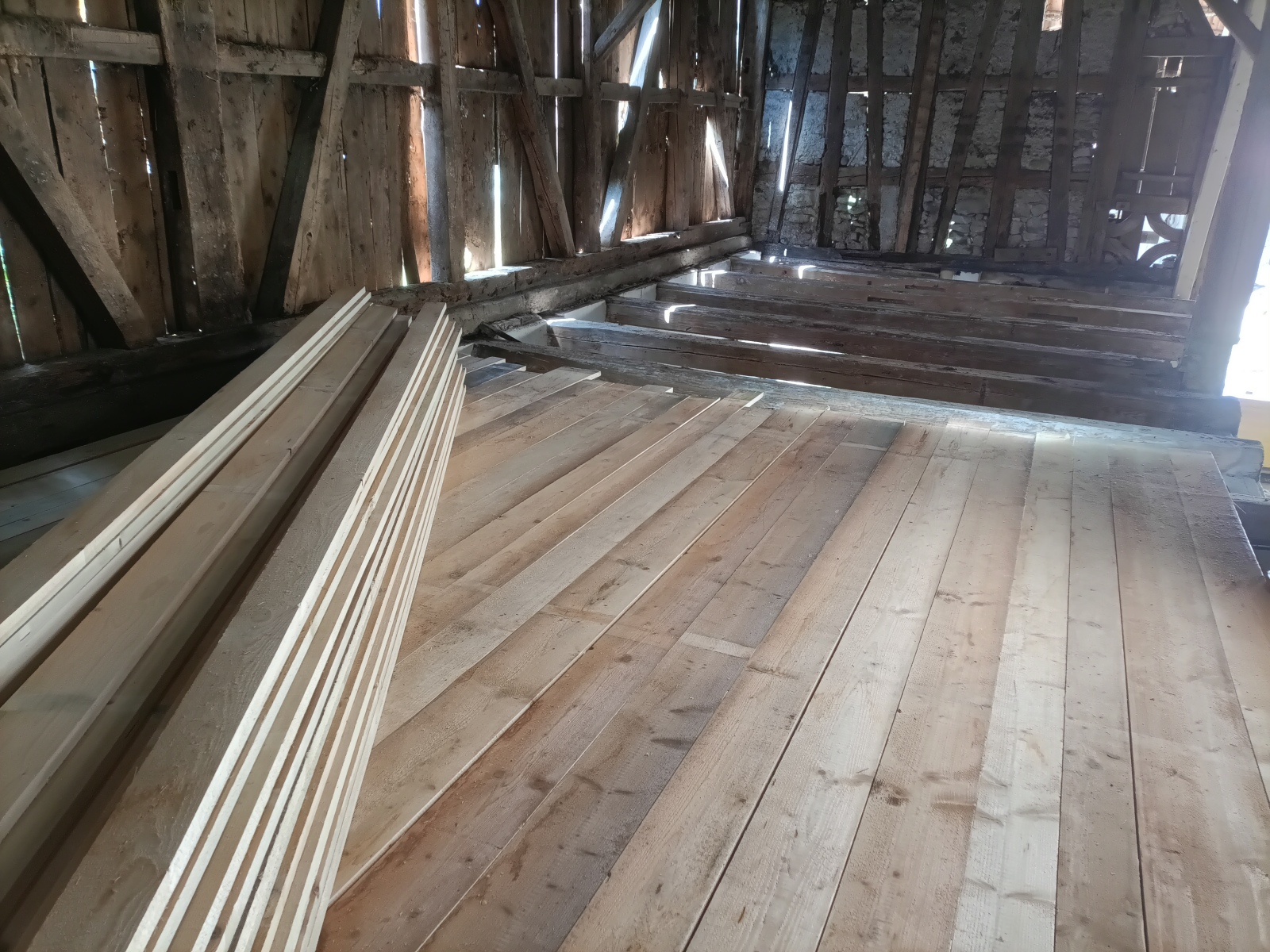 Tenne-Boden auf einer Seite mit Holzdielen neu belegt